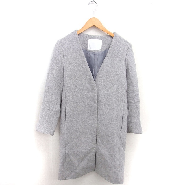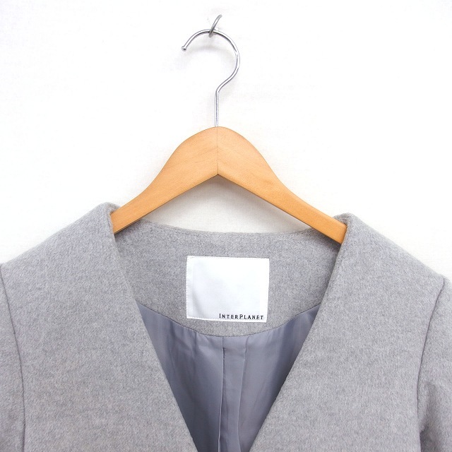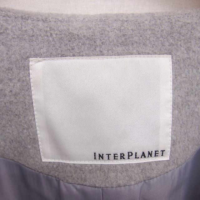 インタープラネット INTERPLANET ノーカラー コート アウター ロング 総裏地 ウール 厚手 FREE グレー /TT レディース