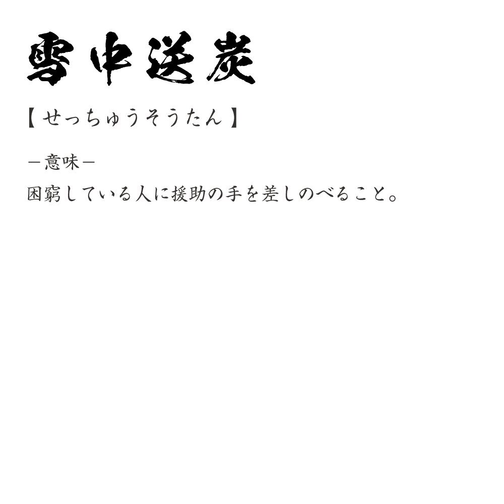 雪中送炭 ( せっちゅうそうたん ) 書道家が書く デザイン Tシャツ 【 四文字熟語 】 メンズ レディース キッズ