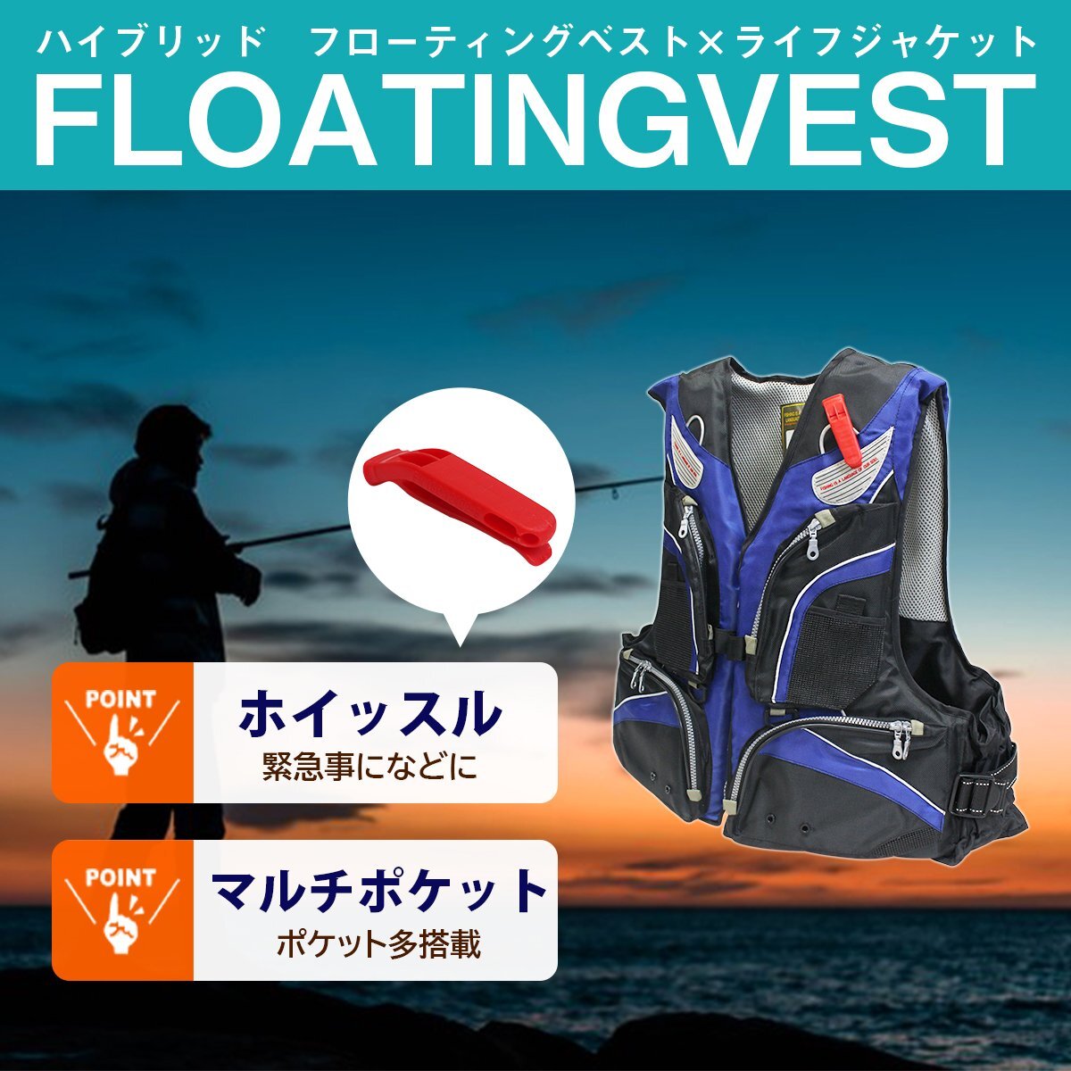 フローティングベスト ブルー 救命胴衣 釣り ベストタイプ 浮力脱着可能 ライフジャケット フィッシングベスト ポケット付き