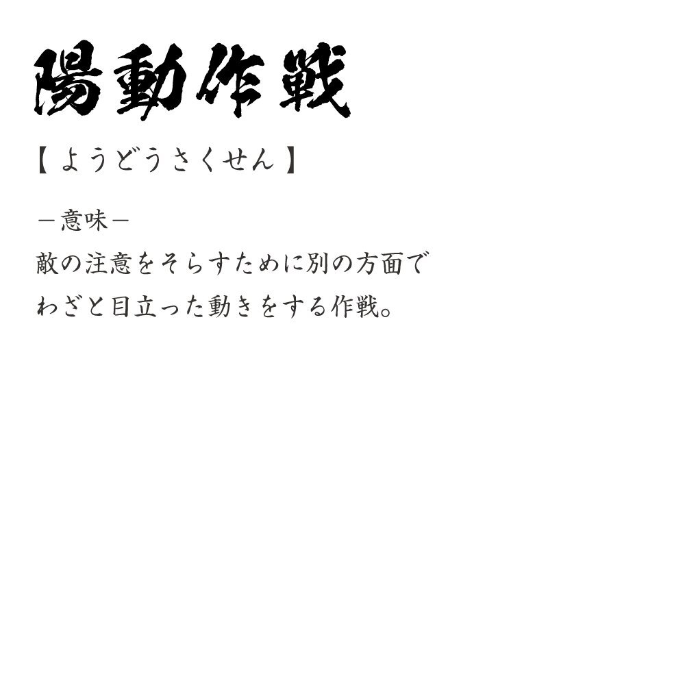 陽動作戦 (ようどうさくせん ) 書道家が書く プリント Tシャツ S M L XL XXL 120 130 140 150 G-S G-M G-L 【 四字熟語 】