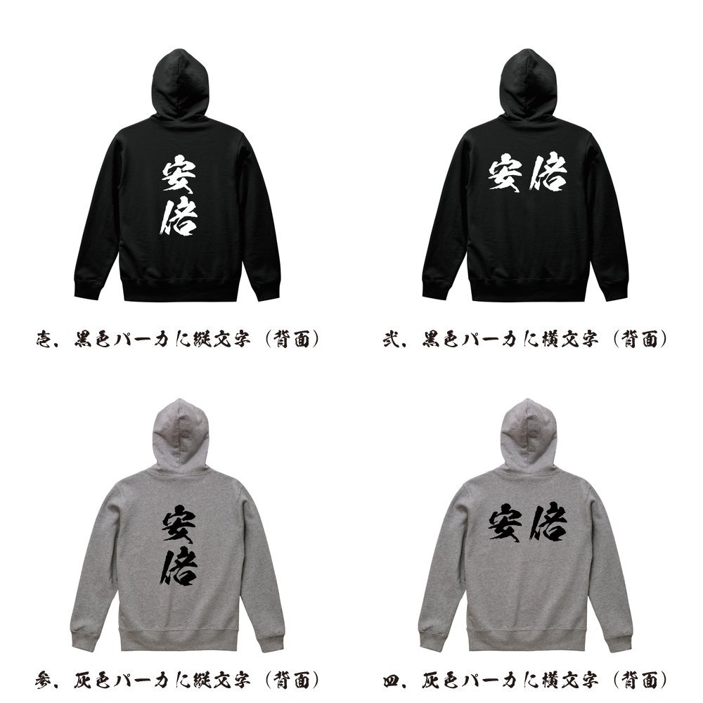 安倍 書道家が書く デザイン フルジップ パーカ 【 名字 】 メンズ レディース キッズ