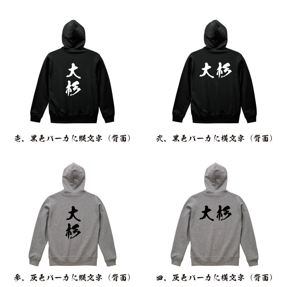 大杉 オリジナル パーカ 書道家が書く プリント フルジップ パーカー S M L XL XXL 110 130 150 【 名字 】