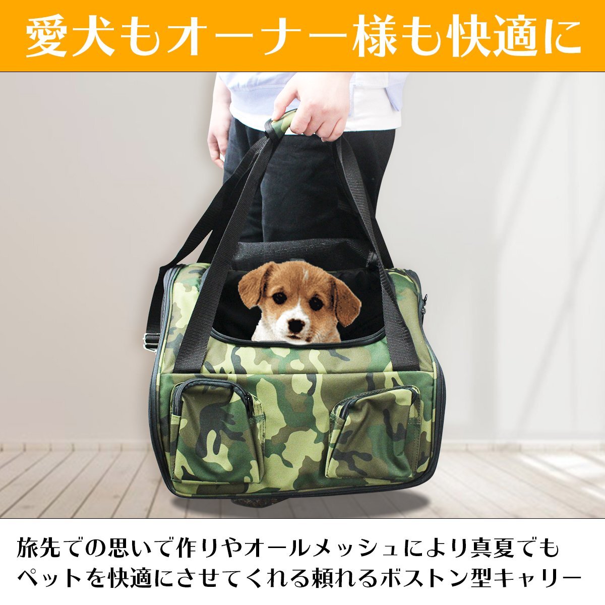 お散歩や旅行用に便利な2way ペットバッグ♪ 迷彩柄グリーン 犬猫兼用 キャリーバッグ ペットキャリー ボストンバッグ ショルダーバッグ
