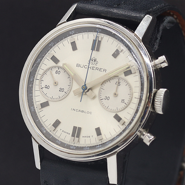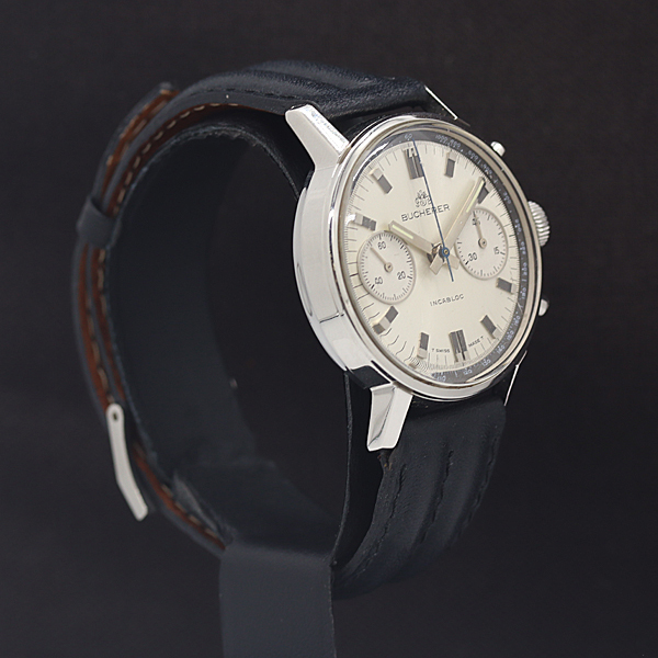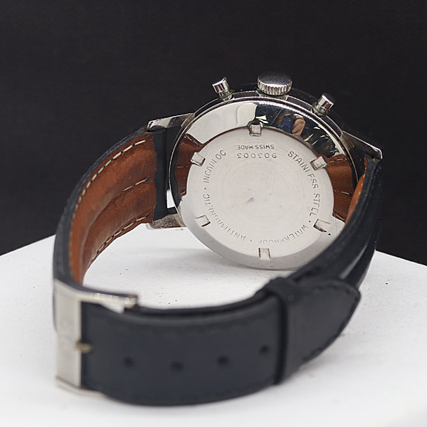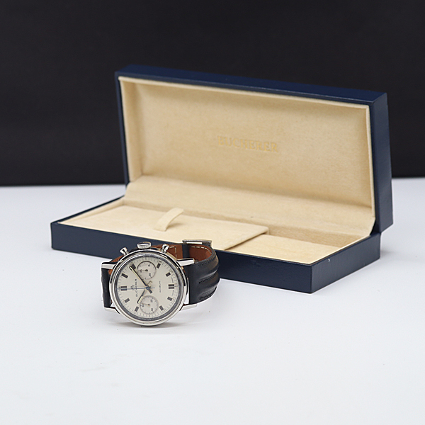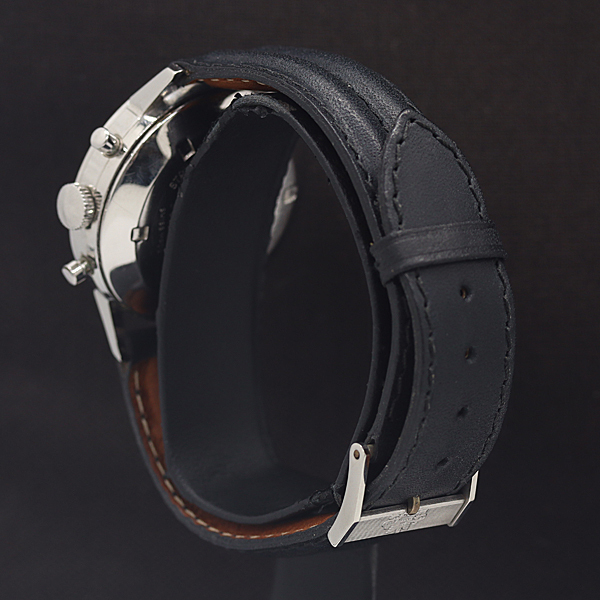 1円 箱付 稼働 良品 カールエフブヘラ クロノグラフ シルバー文字盤 手巻き メンズ腕時計 0039710 9RKT KTU