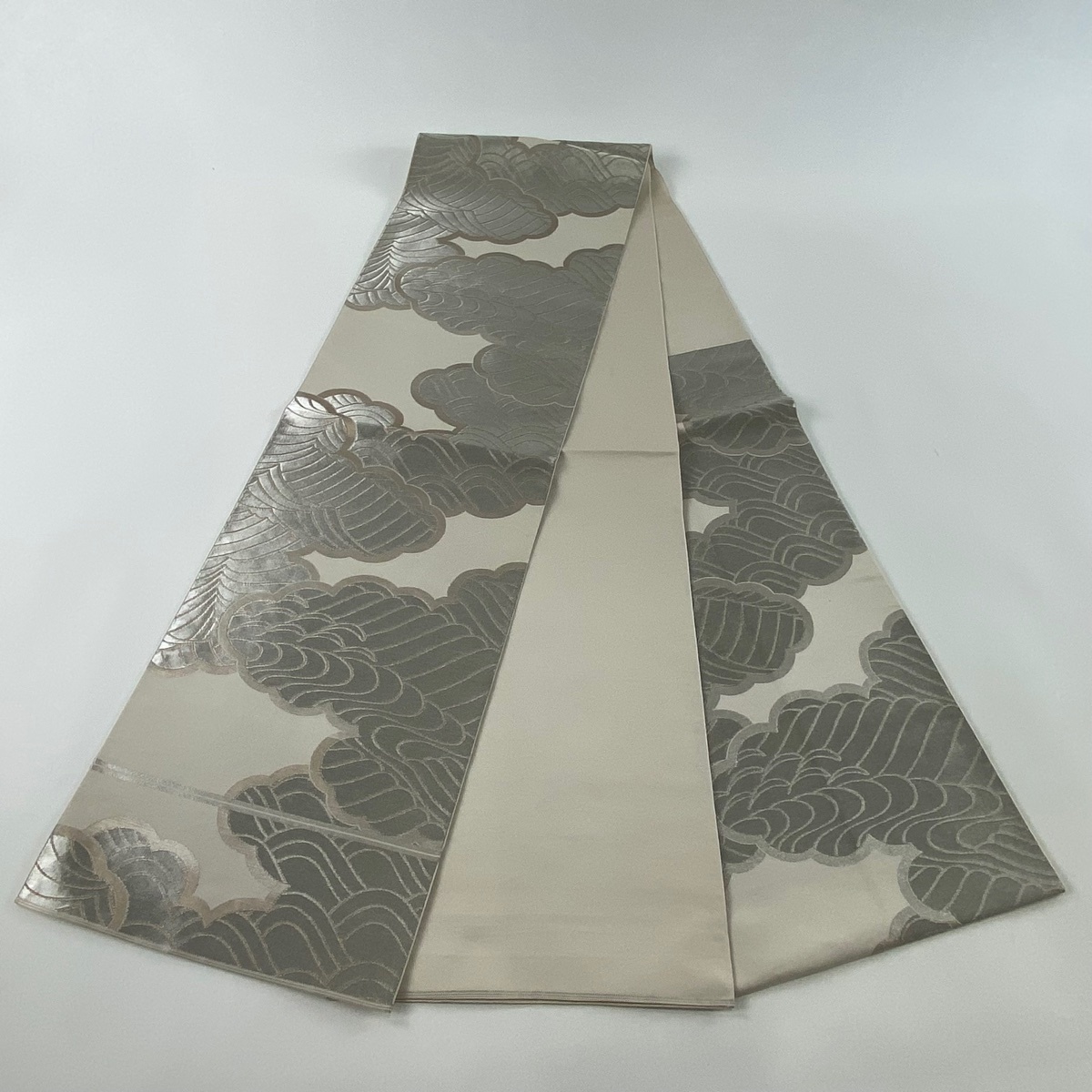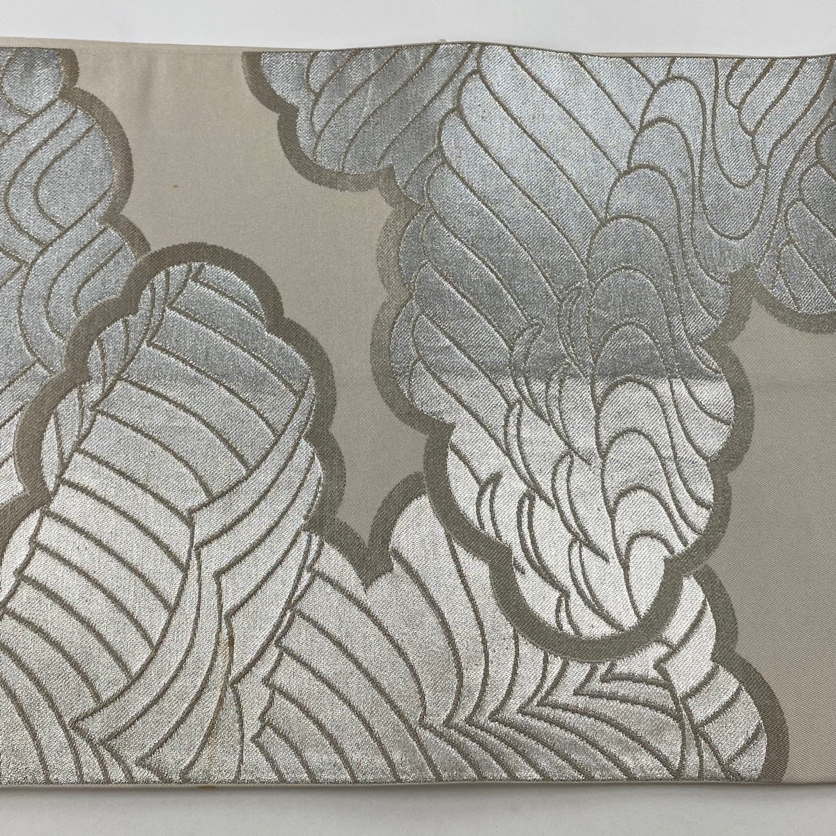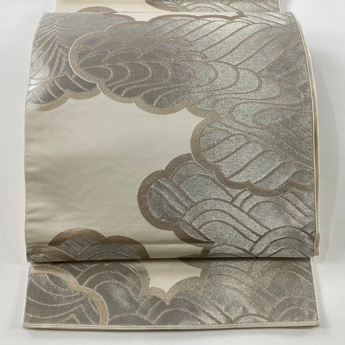 | 袋帯 秀品 川島織物 落款 関西仕立て 雲文 波 銀糸 ベージュ 六通 正絹 【中古】 |