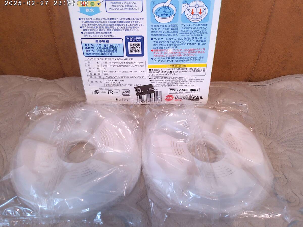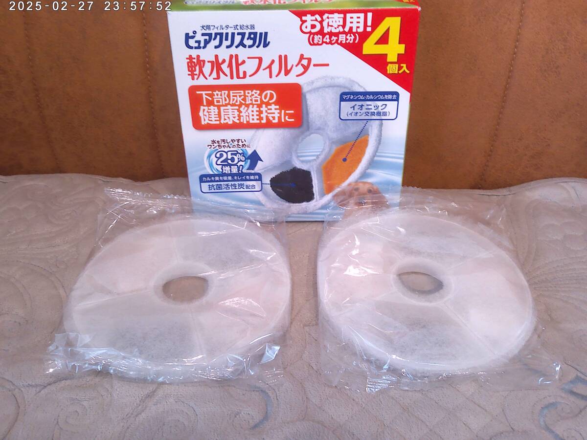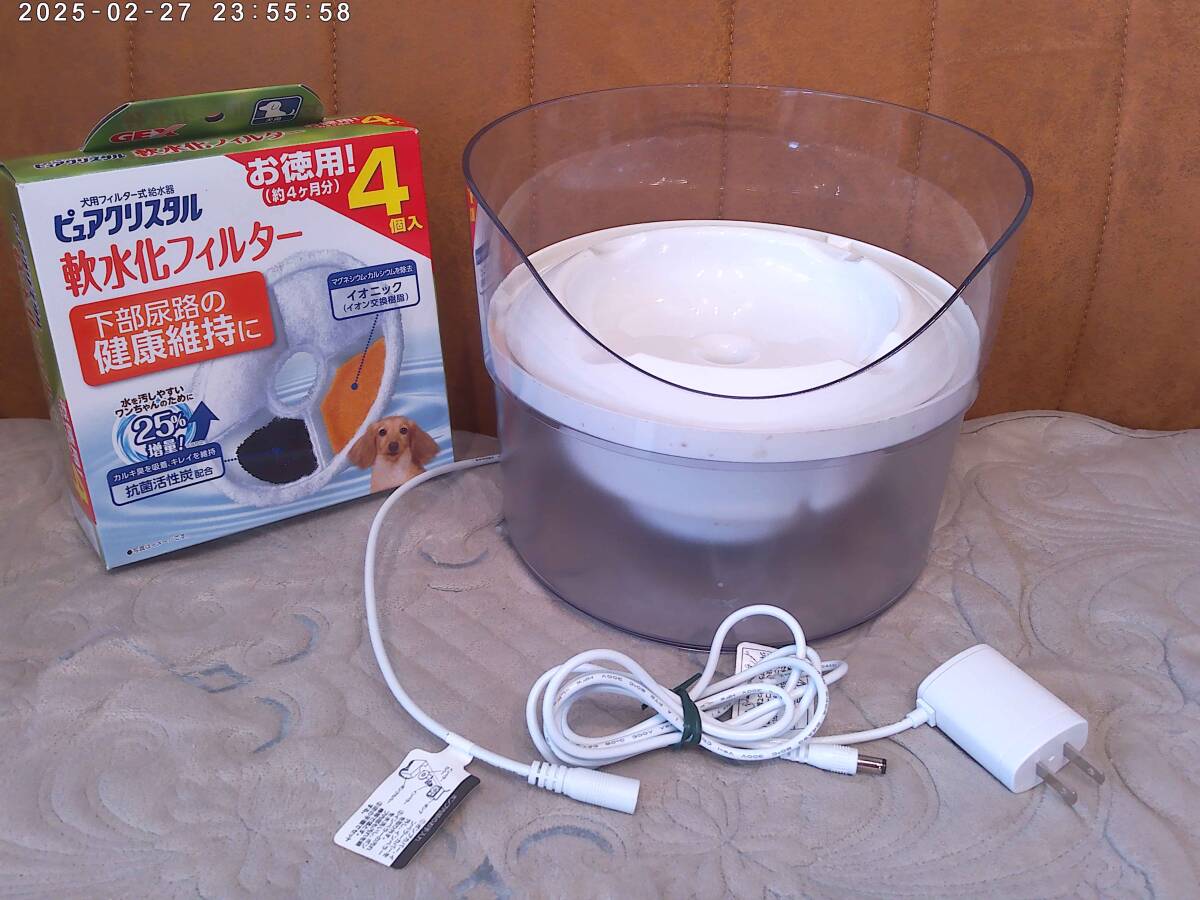 犬用 フィルター式 給水器 ピュアクリスタル 軟水化フィルター 2個付き 電気動作確認済み