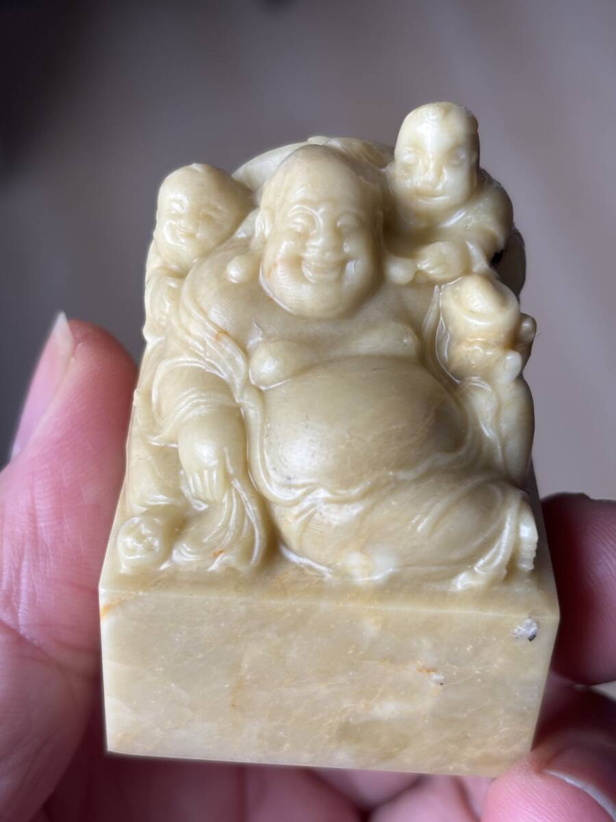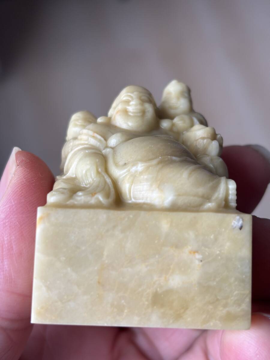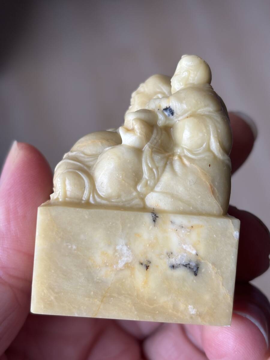 ◆寿山石とラオス石は気温の変化から守るために油(昔の化粧品に使われているもの)を塗ってあります。購入後も定期的に塗ることをお勧めします。当店ではほとんど扱っていませんが高級な寿山芙蓉石は油を塗ると逆に変色や割れを起こしてしまいますのでご注意ください。顔に擦って顔に付いている油をつけるのが一番無難です。一部の青田石と昌化石には蜂蝋を塗ってあります。紙やすりで落として使用してください。写真には写っていませんが後から小さい識別用のシールを貼ってありましてご迷惑をかけしますがそのまま発送させていただきます。