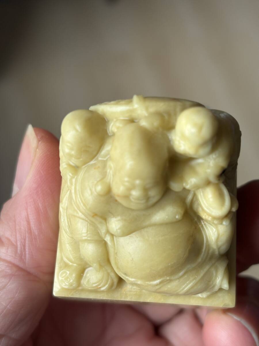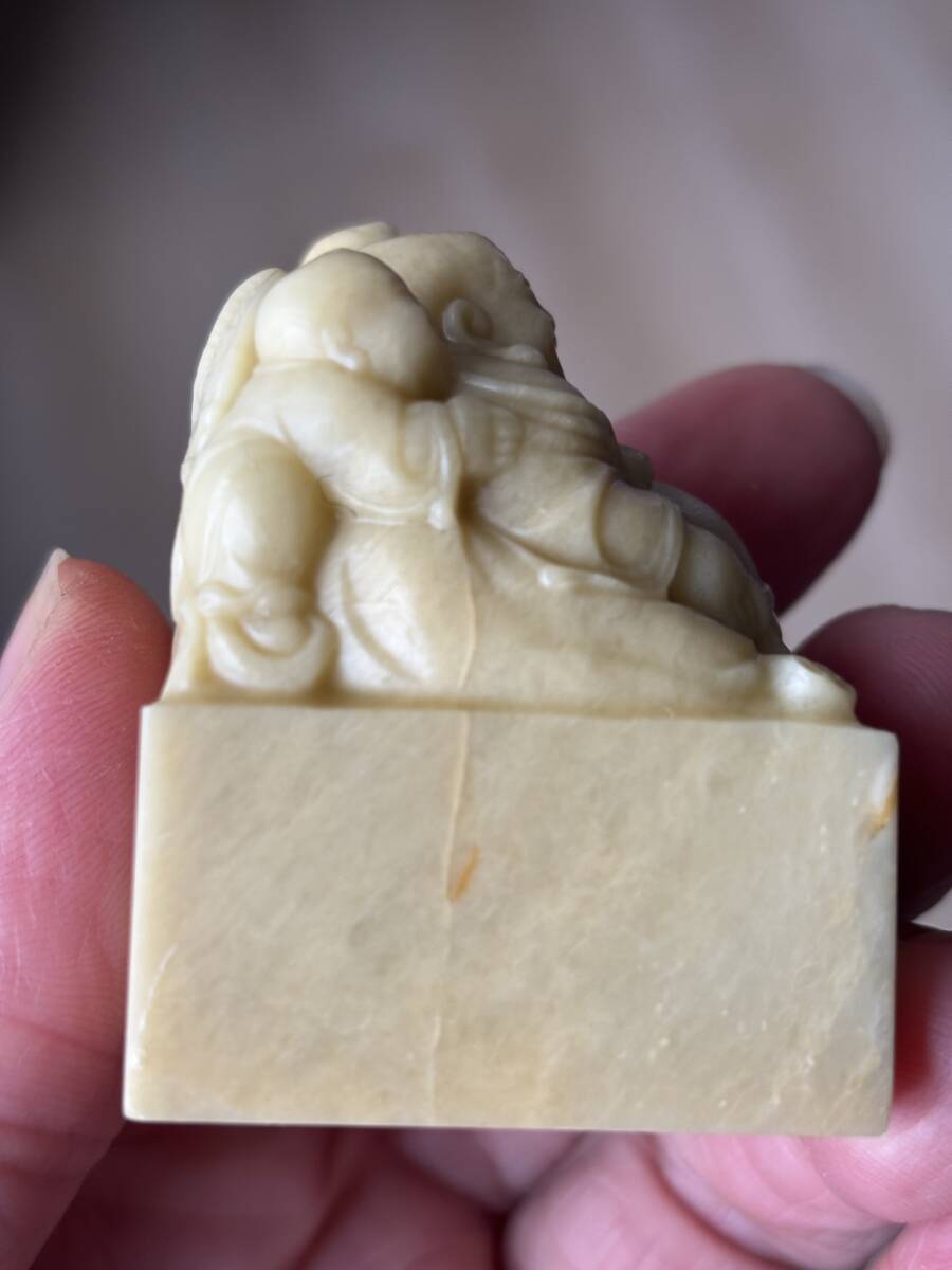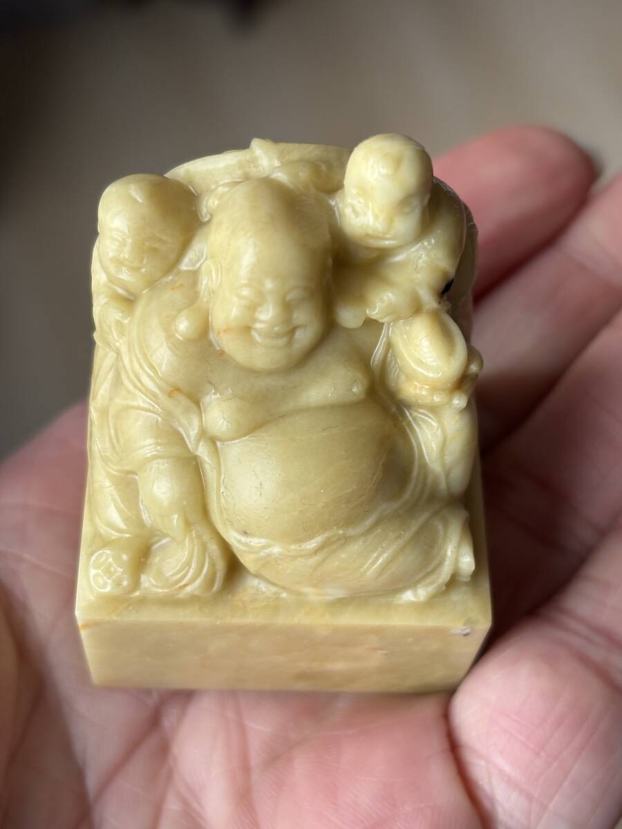 ◆寿山石とラオス石は気温の変化から守るために油(昔の化粧品に使われているもの)を塗ってあります。購入後も定期的に塗ることをお勧めします。当店ではほとんど扱っていませんが高級な寿山芙蓉石は油を塗ると逆に変色や割れを起こしてしまいますのでご注意ください。顔に擦って顔に付いている油をつけるのが一番無難です。一部の青田石と昌化石には蜂蝋を塗ってあります。紙やすりで落として使用してください。写真には写っていませんが後から小さい識別用のシールを貼ってありましてご迷惑をかけしますがそのまま発送させていただきます。