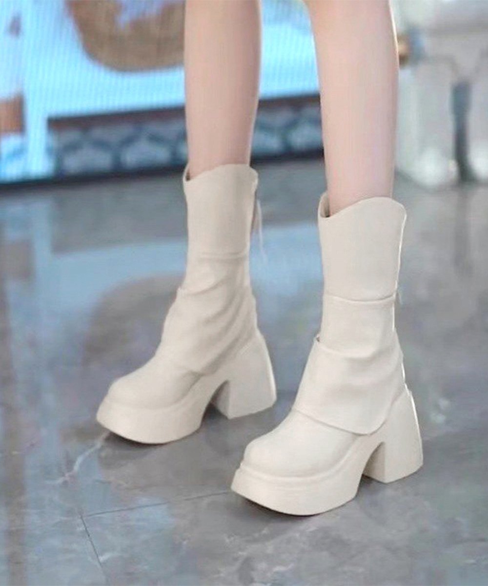 きれいめブーツ合皮 ストリートくつ人気 チャンキーヒール靴