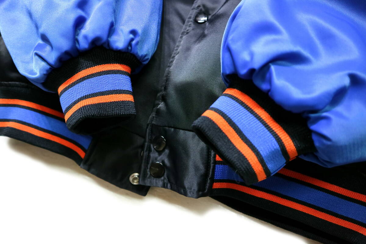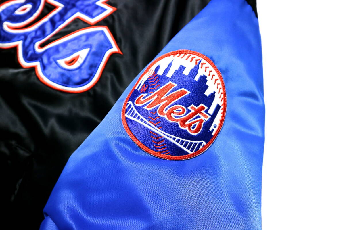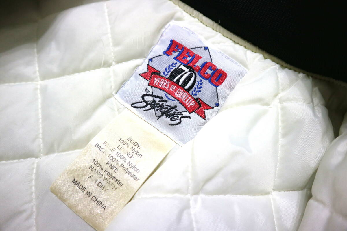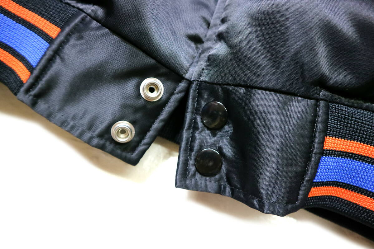 ・適度なハリ感としなやかさの着やすくしっかりとしたナイロン地、裏地キルティングの中綿入りで暖かな作りです。FELCO製のMLB、ニューヨークメッツのナイロンスタジャンです。