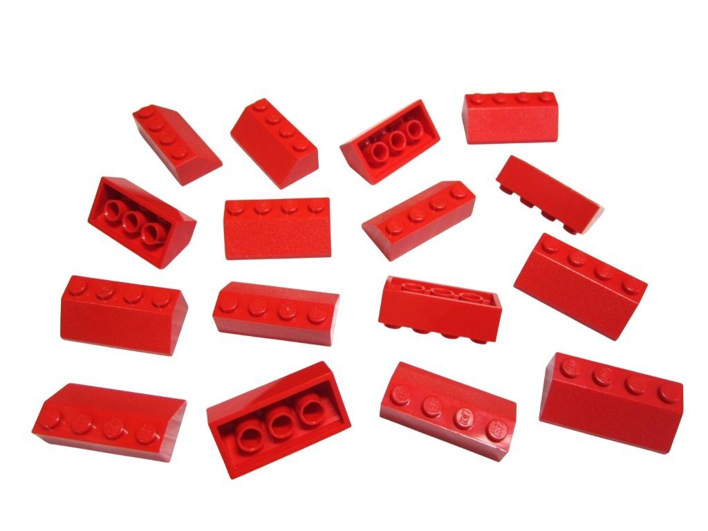 本品は赤色の2×4スロープ16点セット(45度・中古品)になります。