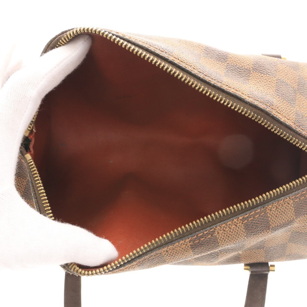 ルイヴィトン パピヨン ダミエ エベヌ ショルダーバッグ ハンドバッグ 鞄 ゴールド金具 ファスナー レディース ダークブラウン シリアル番号:SP0093 付属品:写真のものが全てです ○実寸 高さ:14cm 下横幅:13.5cm マチ(厚さ):13.5cm 持ち手(最小〜最大):40cm 外ポケット:0箇所 内ポケット:0箇所 ⇒ アパレル商品のカラー基準・採寸方法・海外サイズ換算表 (参考)トルソー(マネキン)は男女ともMサイズです。 素材:品質の記載は見受けられません。 | ||||||||||||||||