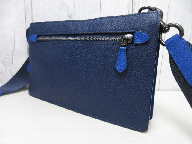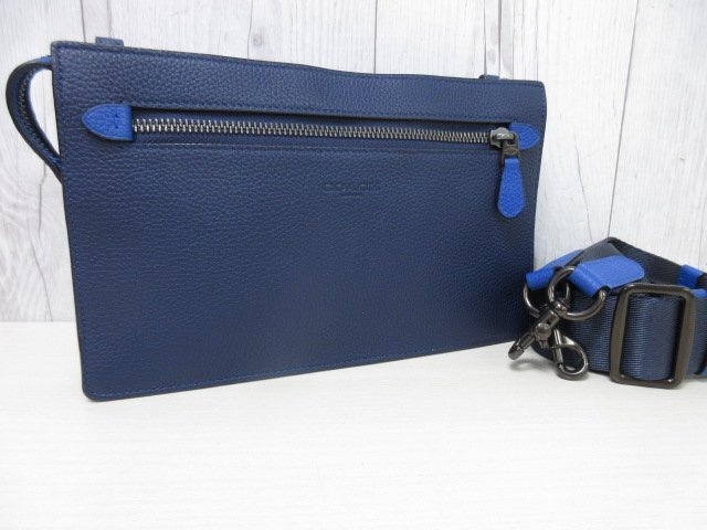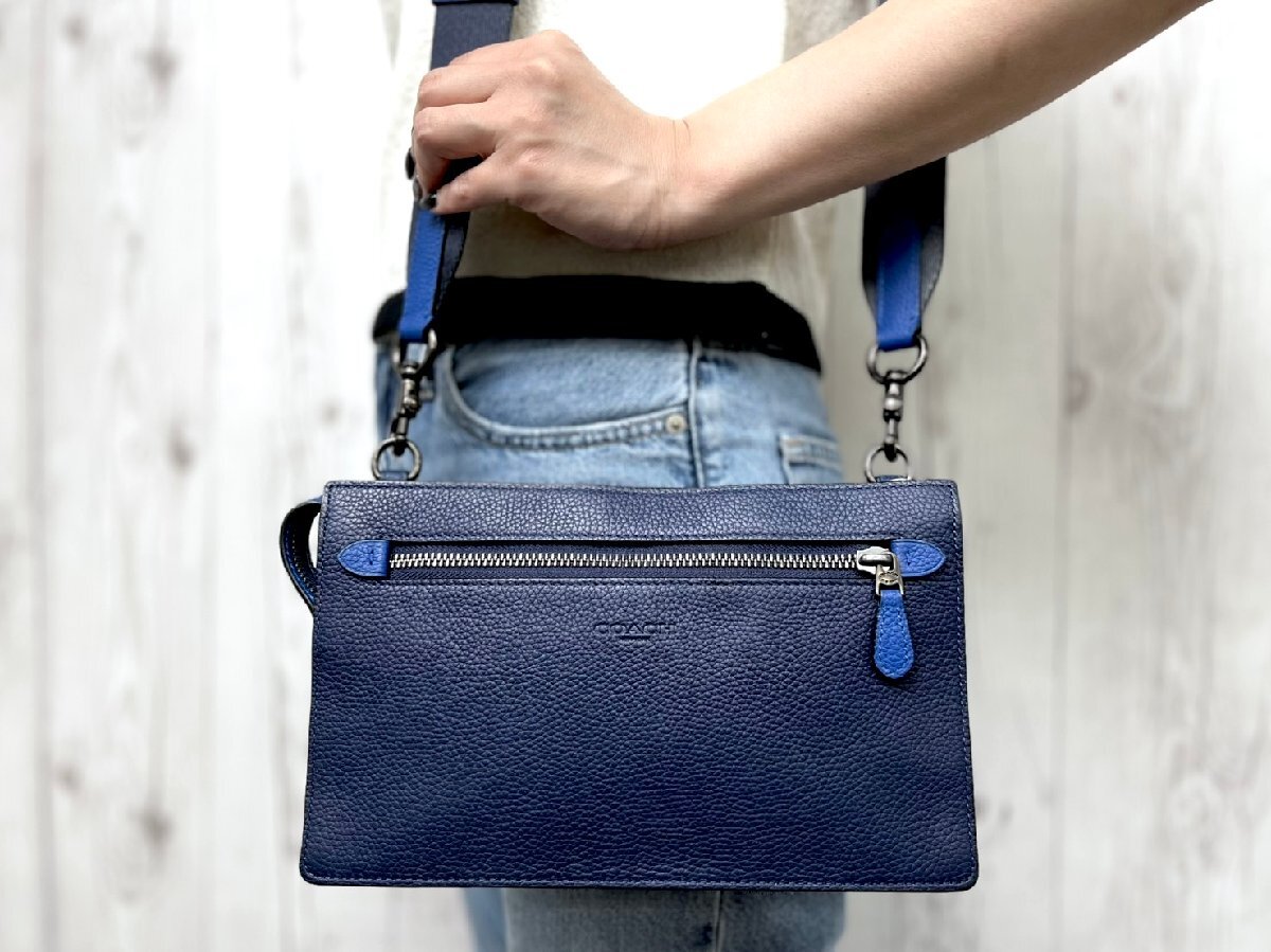 極美品 COACH コーチ リビングトン コンバーチブル ポーチ ショルダーバッグ クラッチバッグ バッグ レザー 紺 2WAY メンズ 90223Y | ||