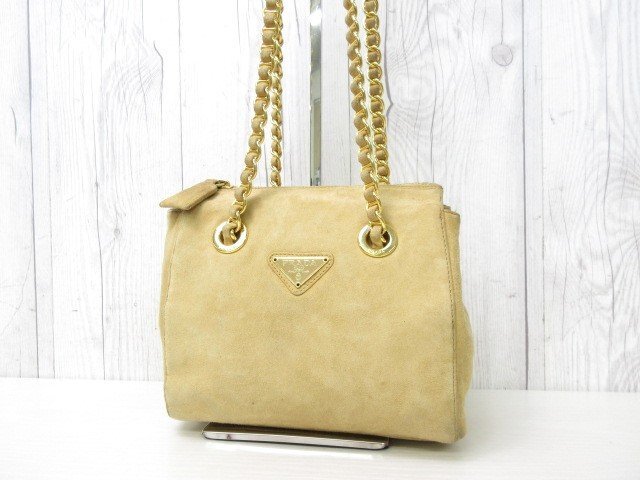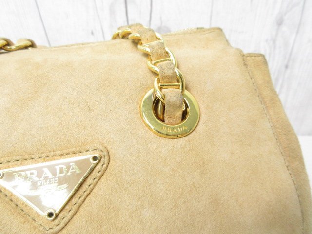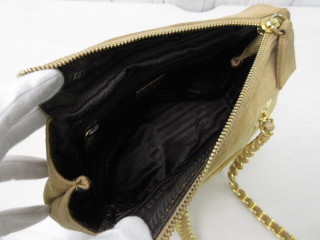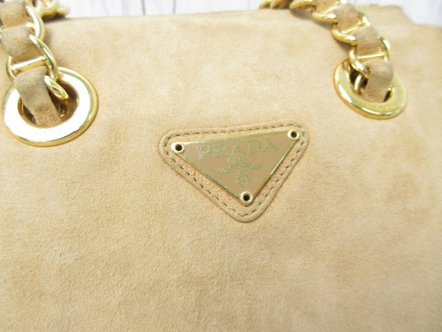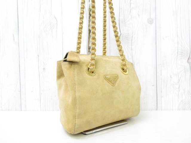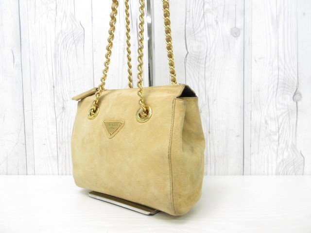 美品 PRADA プラダ ショルダーバッグ チェーンショルダー バッグ スエード ベージュ 90350 | ||