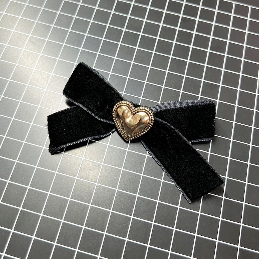 E138 匿名配送 ヘアクリップ リボン ブラック ハート ベアロ ヘアアクセサリー ヘアピン ヘアアクセサリー