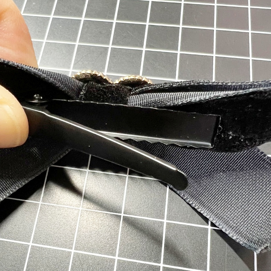 ベロア地のリボンが高級感のあるヘアアクセサリーです。