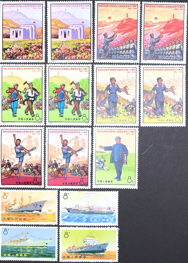 45■未使用 中国切手 革7 船シリーズ 4種完 革8 延安「文芸講話」発表30周年 6種完 +5枚