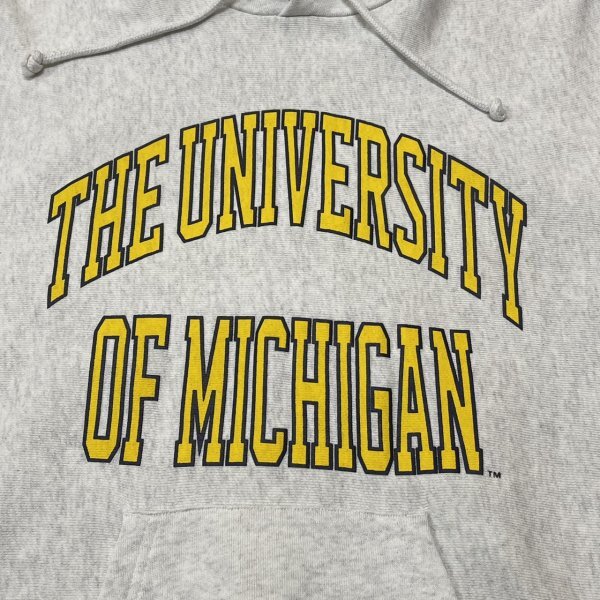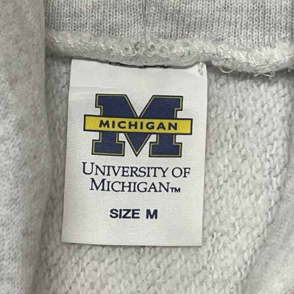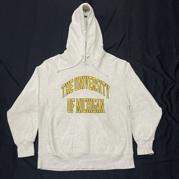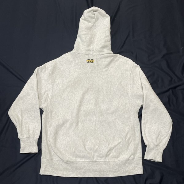GU カレッジロゴ フーディー オフホワイト ミシガン大学 デカロゴ ジーユー  リバースウィーブ フーデッド パーカー スウェット 石瀬7449