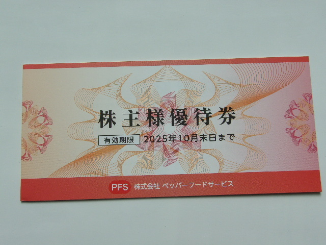 ペーパーフードサービス株主優待券 3000円分 500円×6枚です。有効期限は、2025年10月末日です。普通郵便で送料込みです。