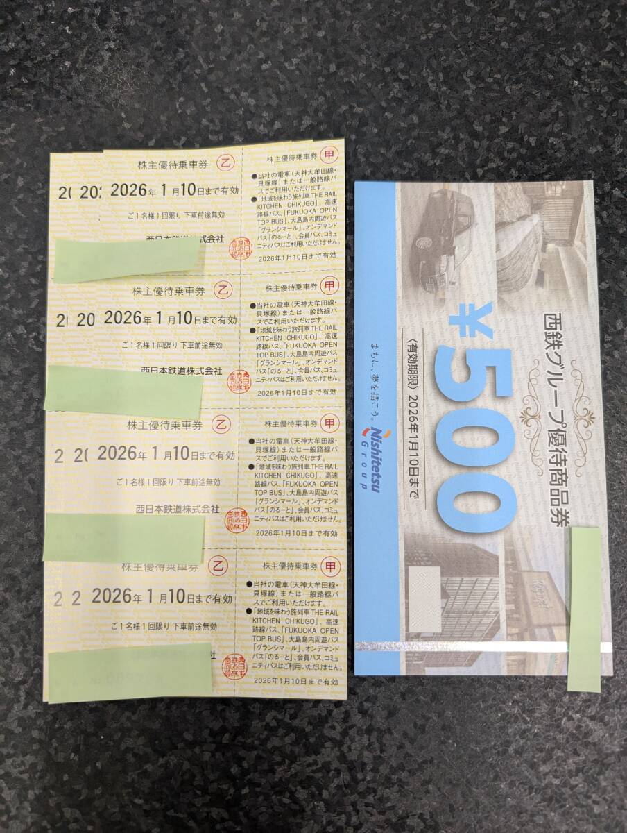 西日本鉄道株主優待乗車券+西鉄グループ優待商品券500円券