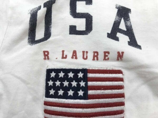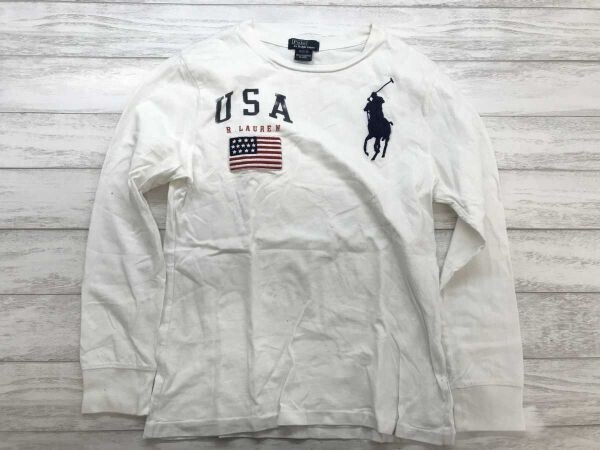 Polo by Ralph Lauren ポロバイラルフローレン キッズ 星条旗ワッペン ビッグポニー刺繍 長袖Tシャツ ロンT 綿100% M(10-12) 白です。