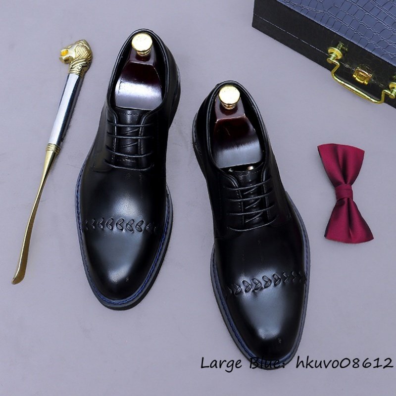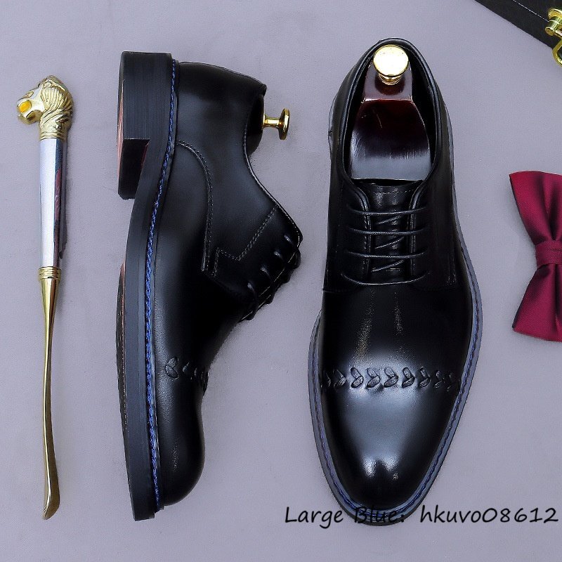 定価10万◆最高級 本革 ビジネスシューズ 牛革 レザーシューズ 職人手作り ドレスシューズ 新品 フォーマル 紳士靴 革靴 ブラック 24.5cm