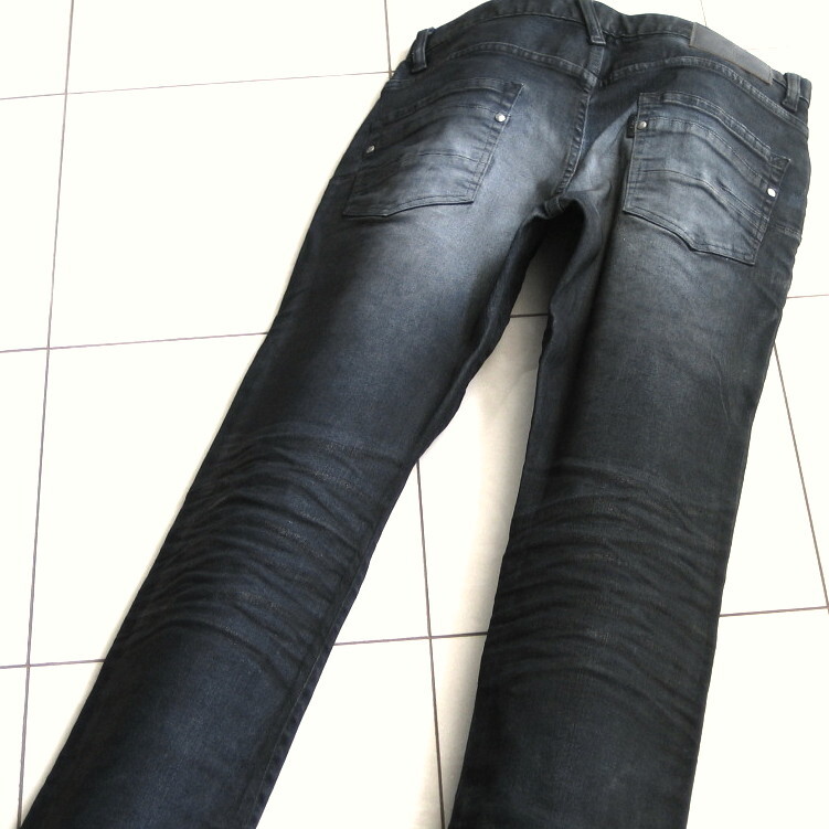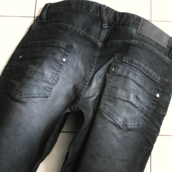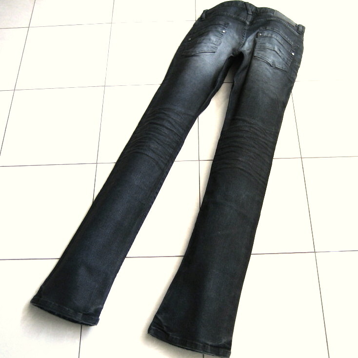 ウエスト85 わたり幅(股の付け根の太腿幅)28 前股上23 股下93.5 膝幅(股下30cm部分)19.5 裾幅21.5(cm/約)