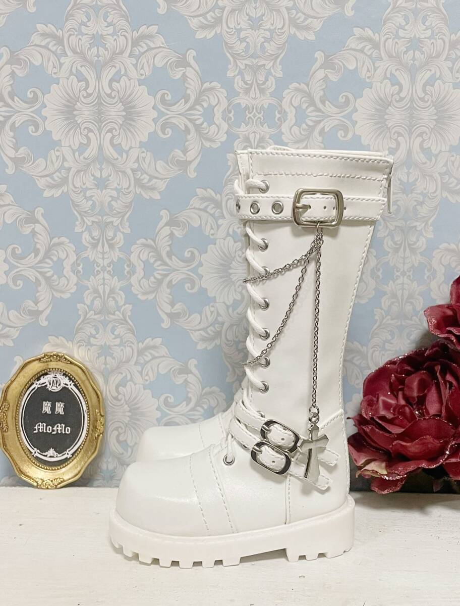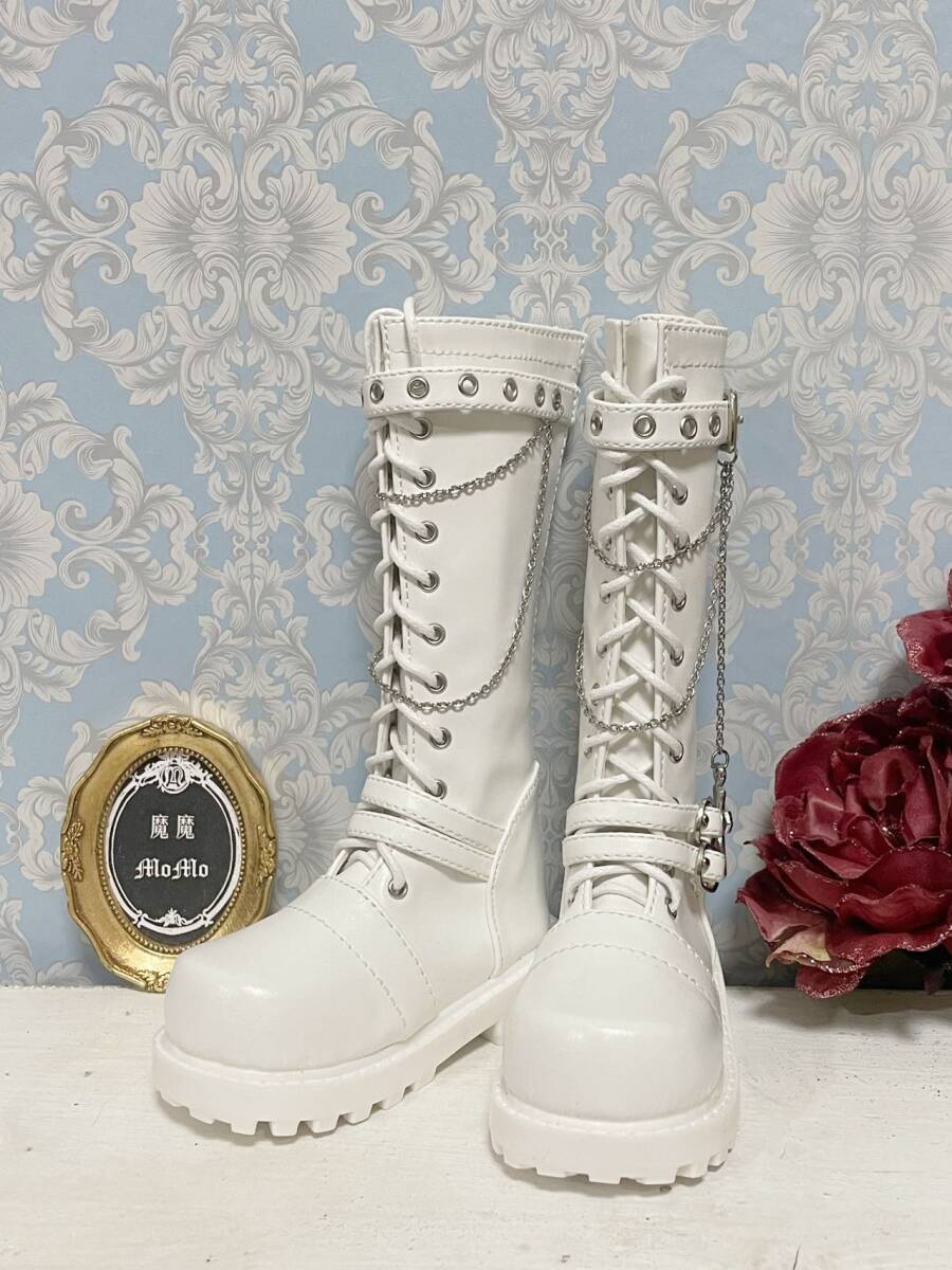 魔魔★SD13-SD17男 チェーン付き編み上げロングブーツ 白★新品