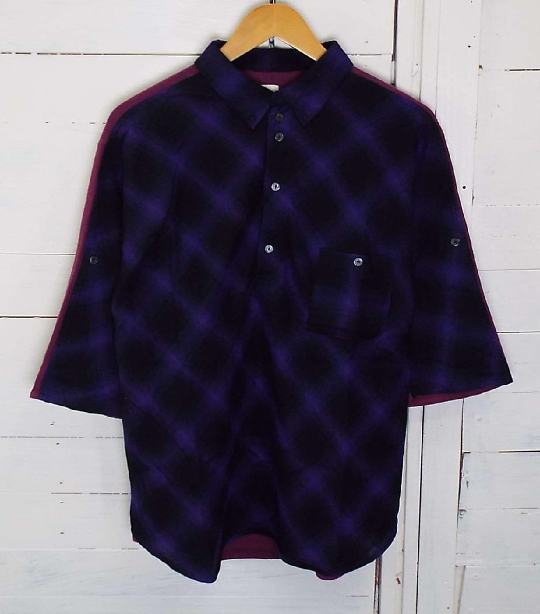 商品名 | 半袖 ポロシャツ 変形 切替え チェック パープル系 サンプル品 品質タグなし |