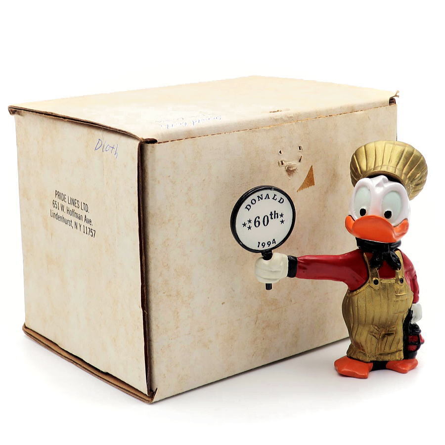 | 商品説明 | ドナルド 鉄道機関士フィギュア ドナルド65周年記念 Pride Lines(プライドライン)社 USA 1994年 ダイキャスト製 高9.7cm 状態良好 箱あり Pride Lines(プライドライン)社はアメリカの鉄道模型メーカーで、ディズニーの列車などのアイテムも製作していました。 |