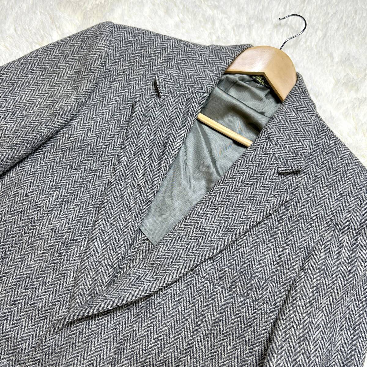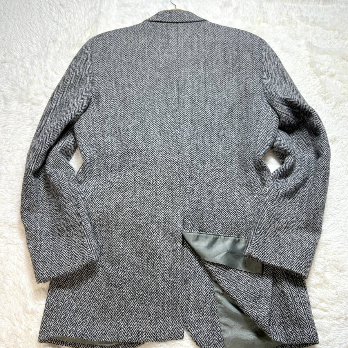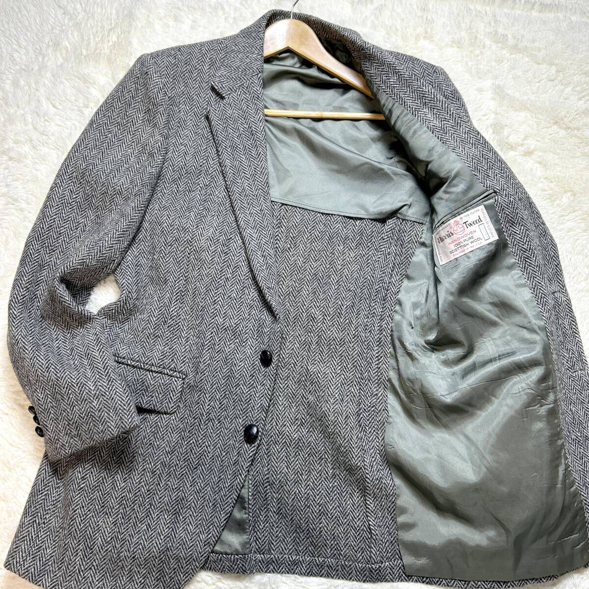 極美品/XL相当 希少 Harris Tweed ハリスツイード テーラードジャケット ヘリンボーン くるみボタン ウール 毛 USA グレー ビジネス 秋冬