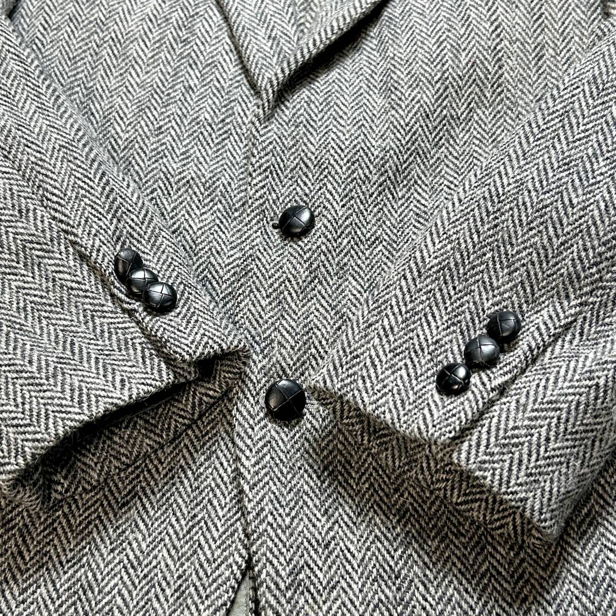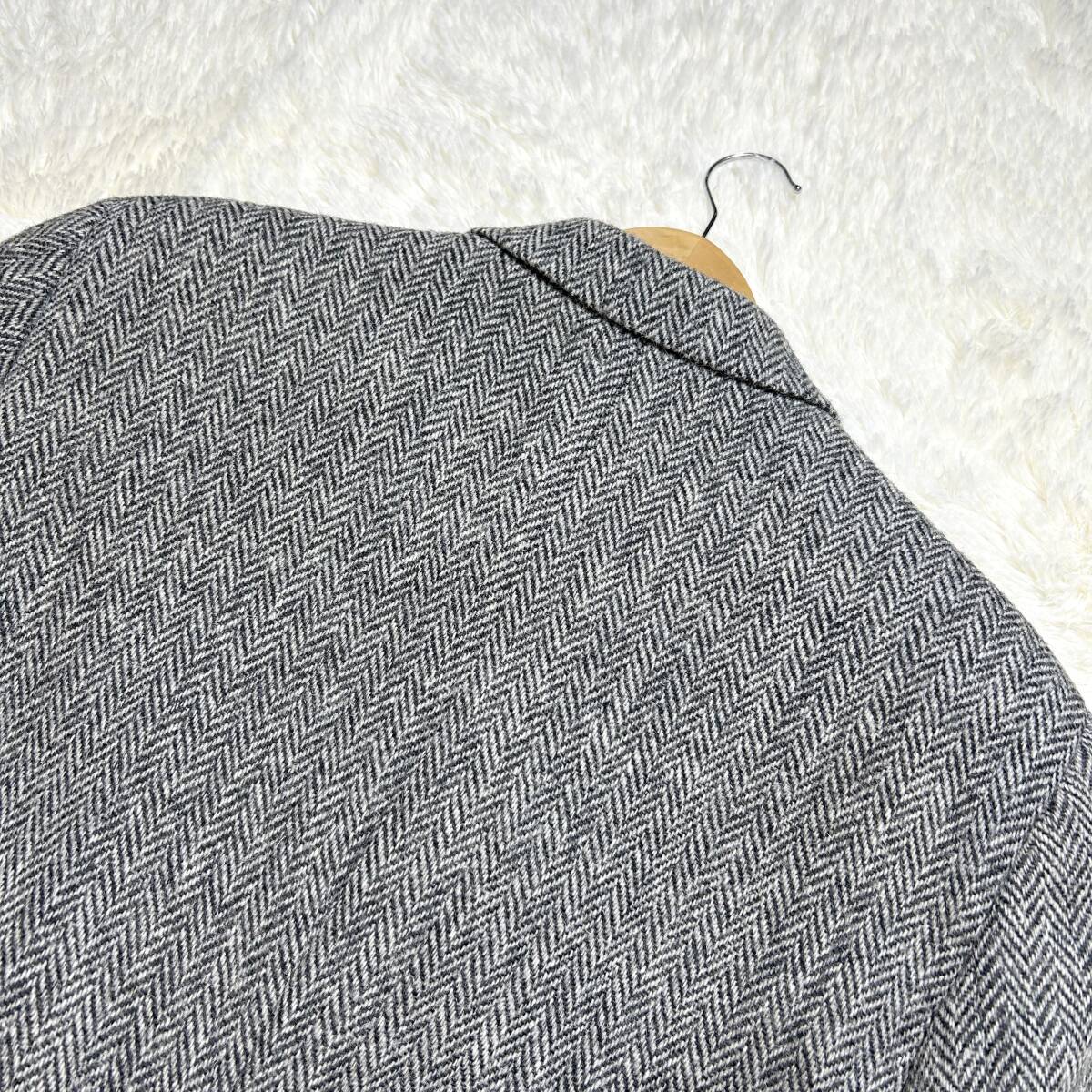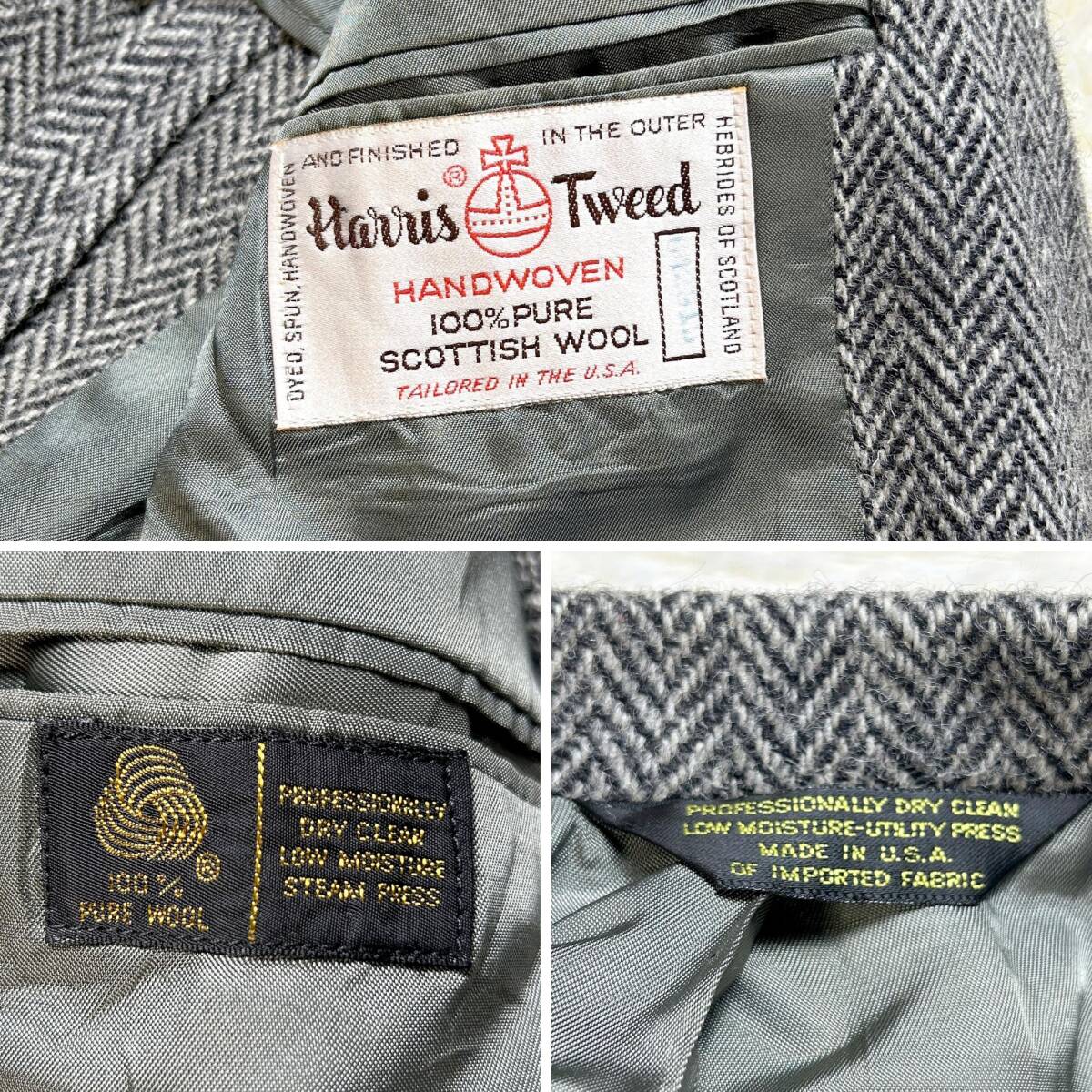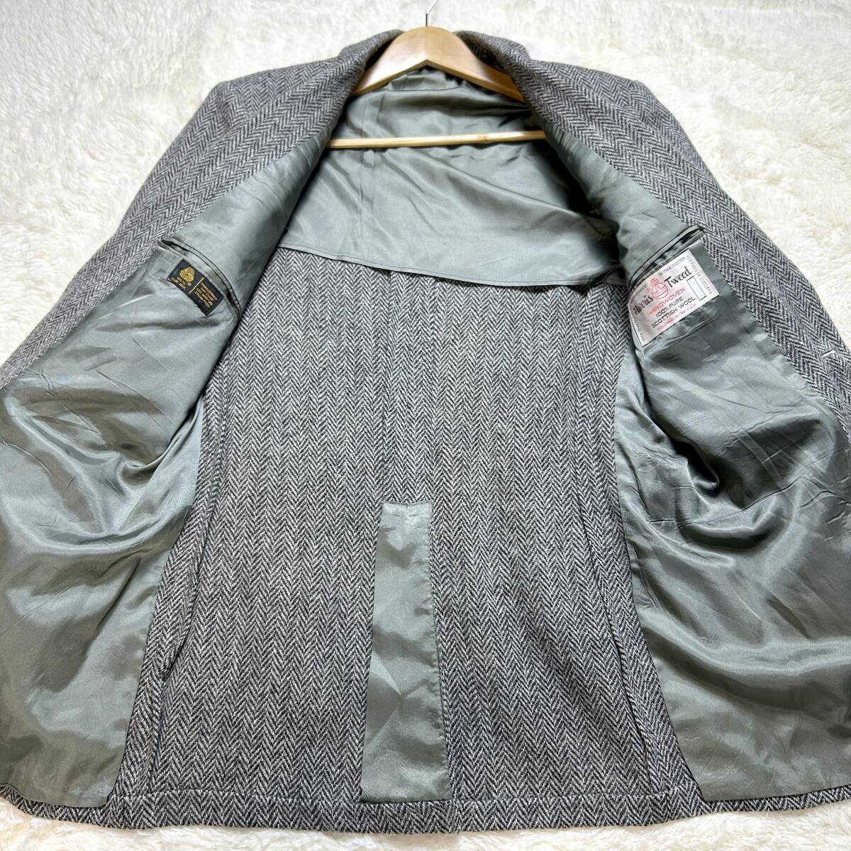 極美品/XL相当 希少 Harris Tweed ハリスツイード テーラードジャケット ヘリンボーン くるみボタン ウール 毛 USA グレー ビジネス 秋冬