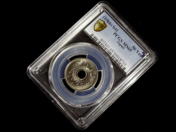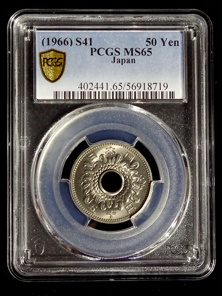 昭和41年 菊50円ニッケル貨 MS65 (PCGS) -完全未使用 1966 スラブ入りビンテージコイン