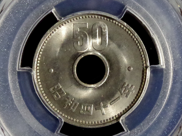 旧50円硬貨の最終年銘、昭和41年のスラブ入りです。