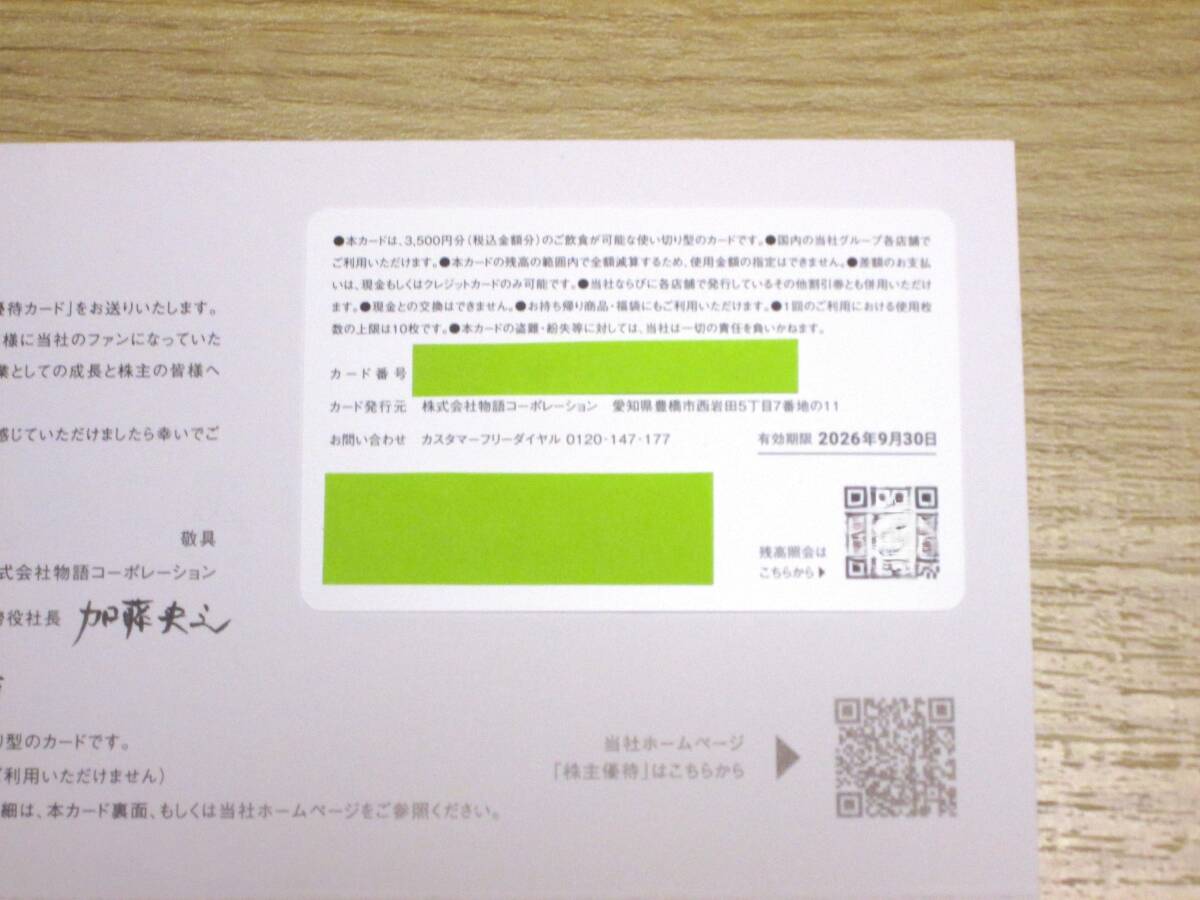 ・3,500円分のご飲食が可能な使い切り方のカードです。