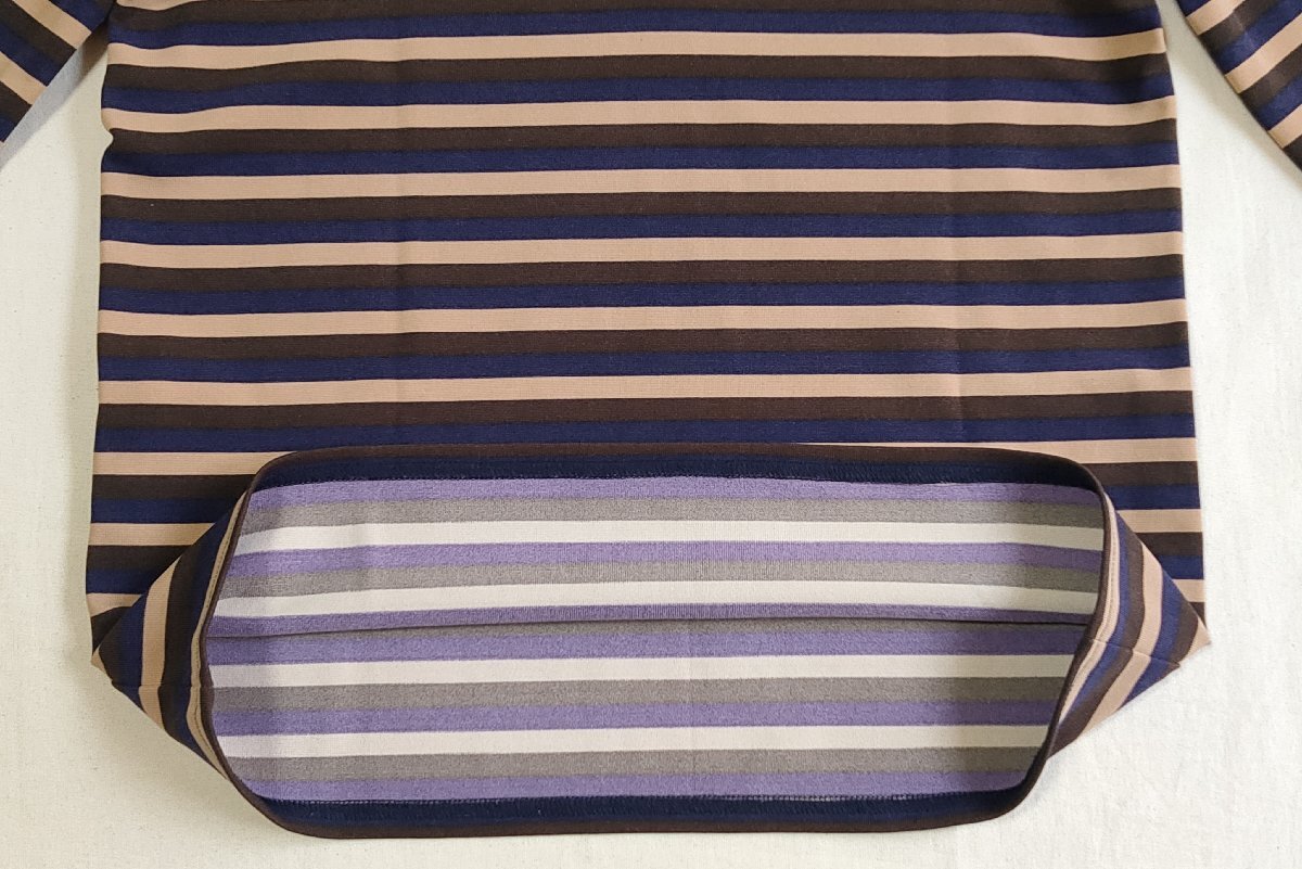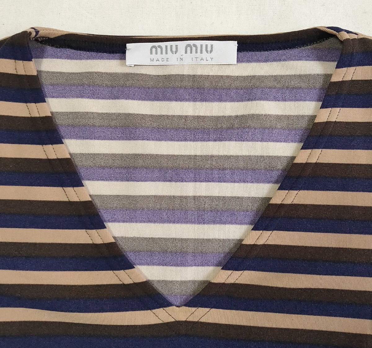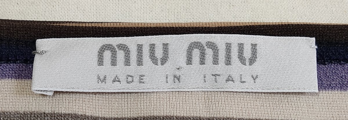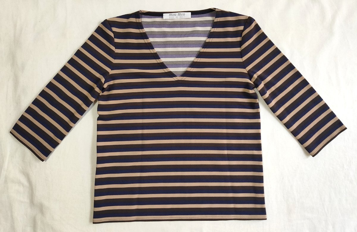 ★miu miu ミュウミュウ★ ジャージー生地 7分袖 カットソー Vネック ロンT サイズ40 ブラウン×パープル ボーダー プラダジャパン 02909