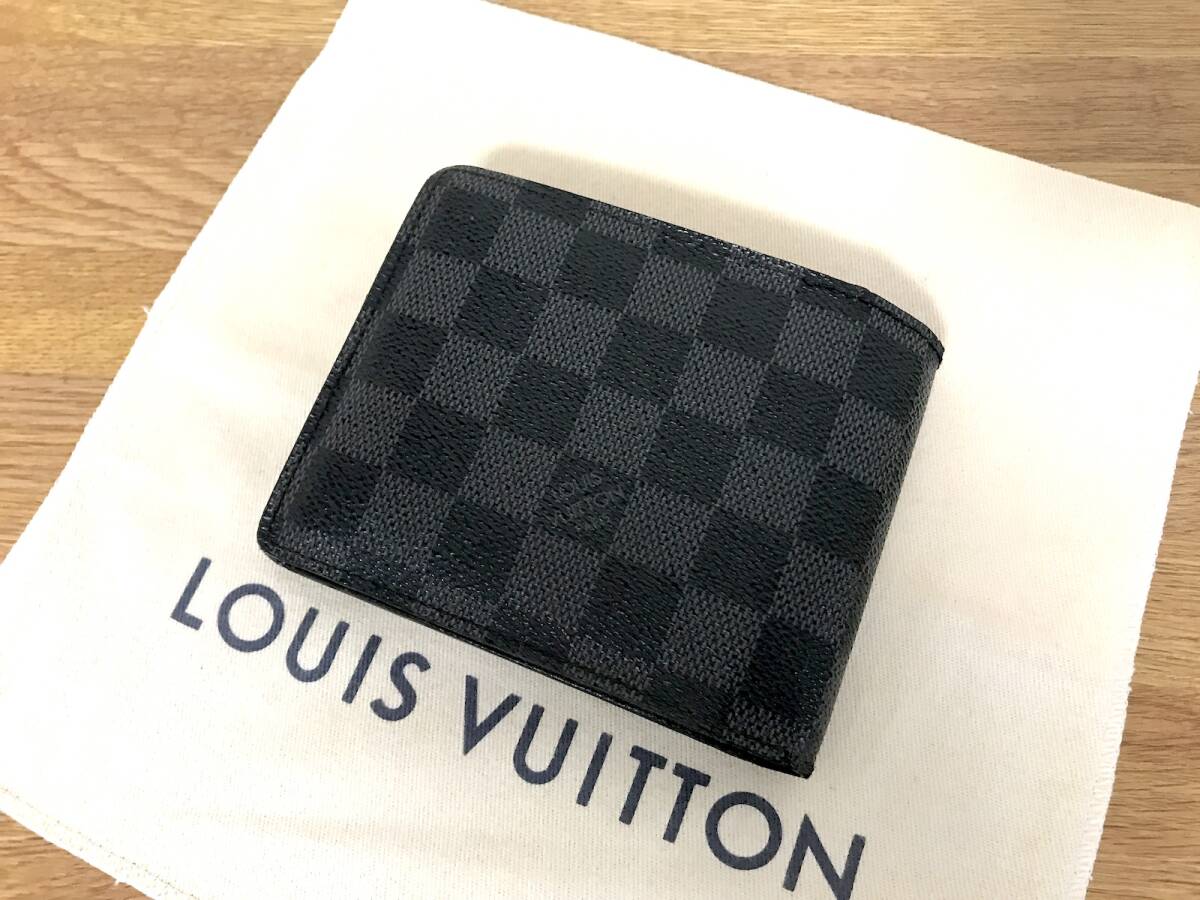 【超美品】ヴィトン ダミエ グラフィット 黒 二つ折り 財布 ポルトフォイユ フロリン 小さい/マルコ メンズ タイガ ブラザ マネークリップ