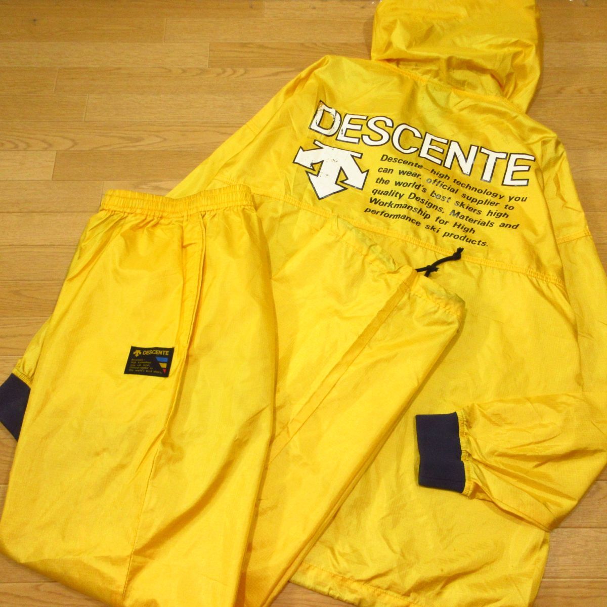 ◎希少 80s!M 上下セット DESCENTE デサント セットアップ ウィンドブレーカー ジャケット&パンツ ヴィンテージ 80年代 メンズ 黄◆BA3691