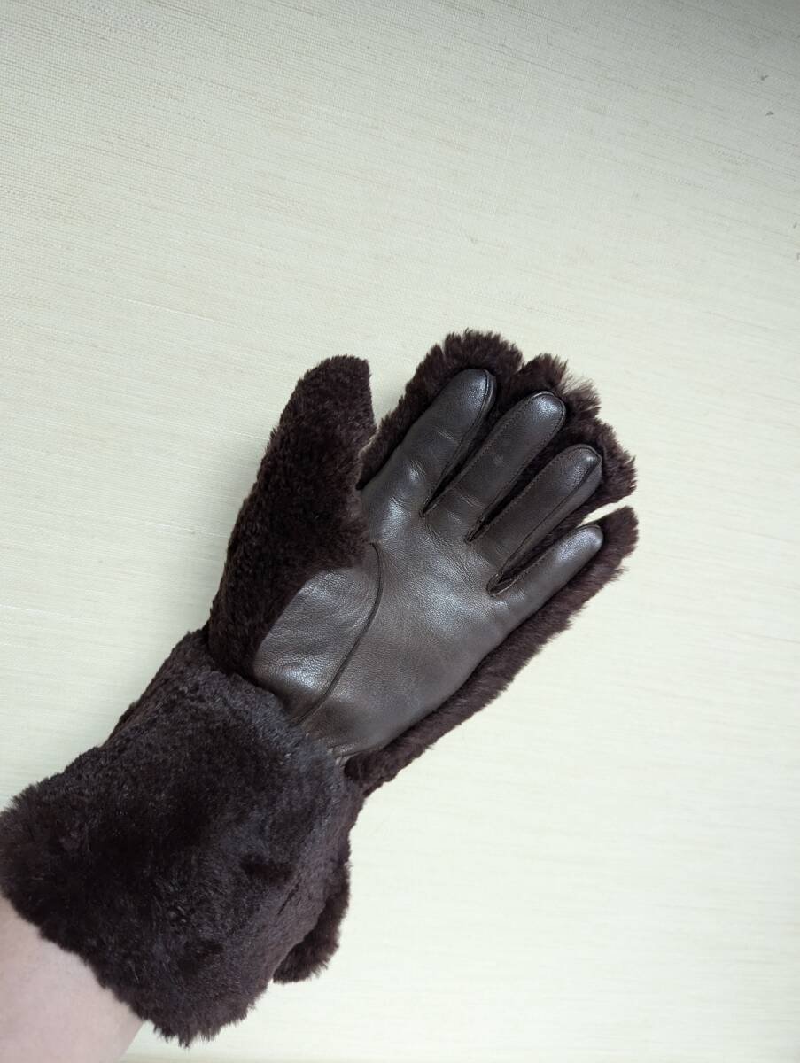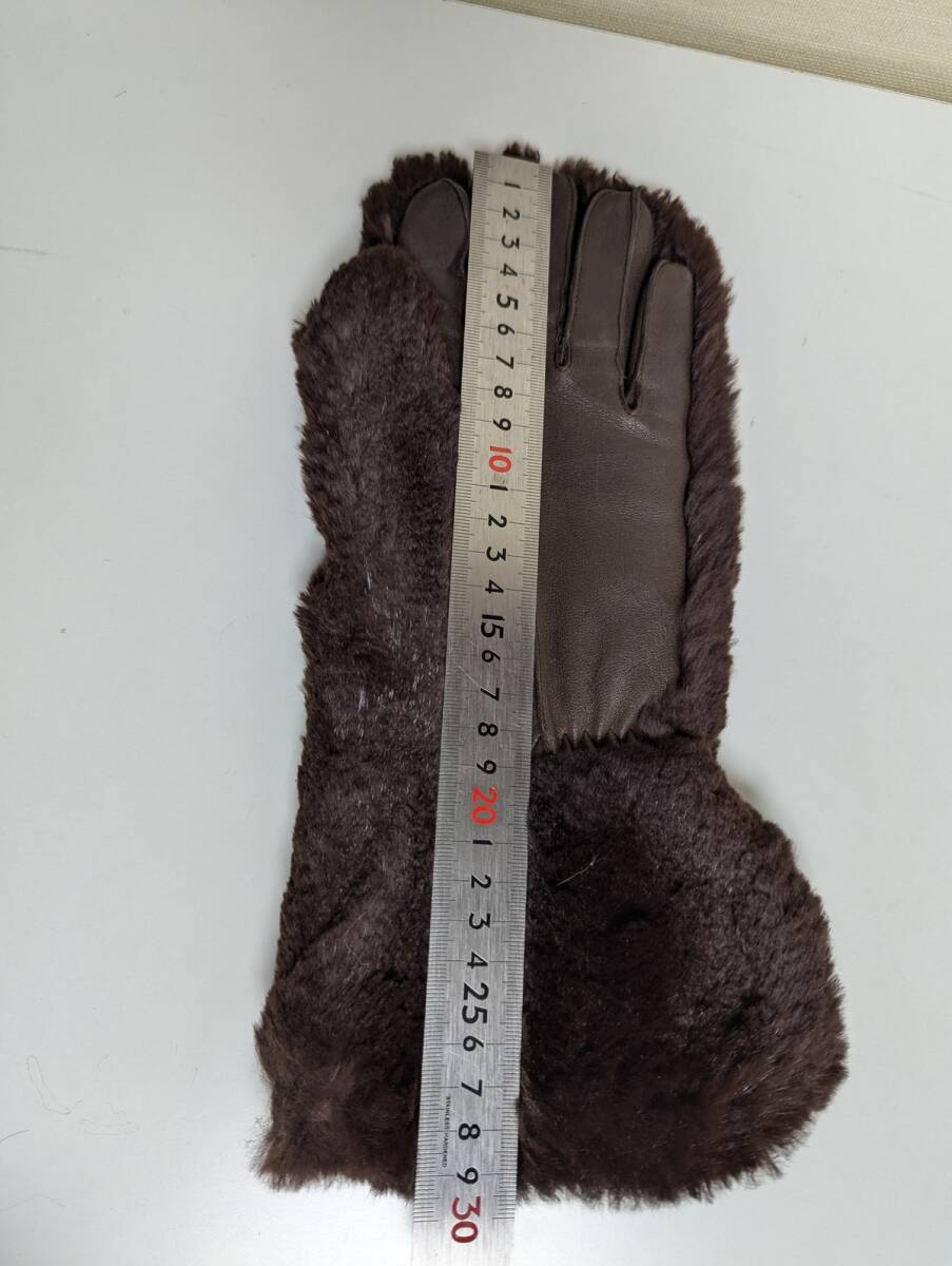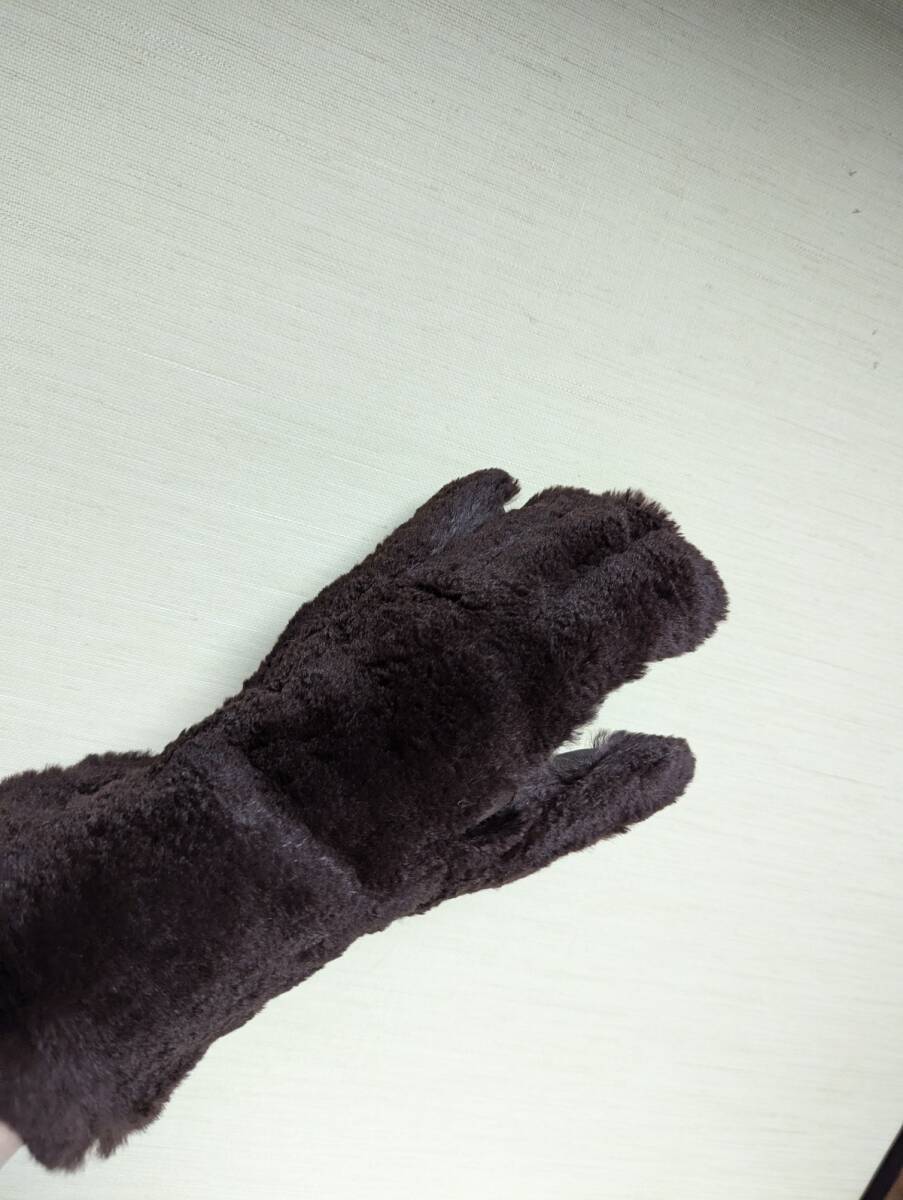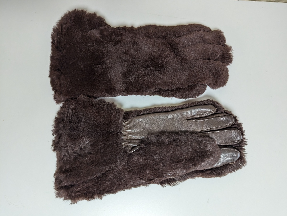 ゴージャスなグローブです。この種のものとしては薄手に仕上がっておりスマートさがあります。ライニングは裾がラビットファー、奥側はウール系です。