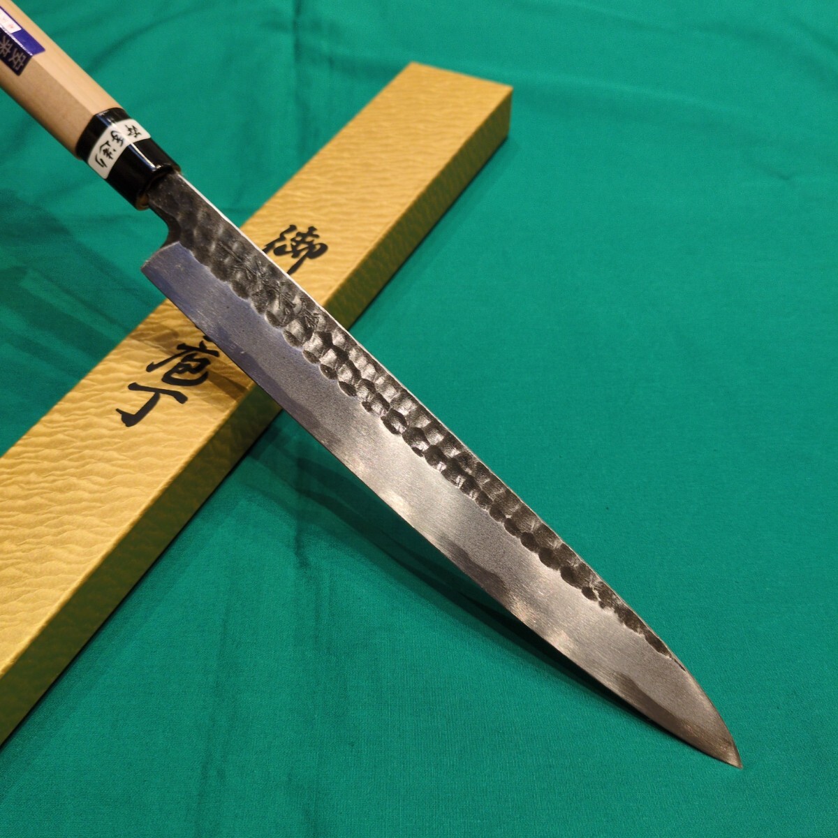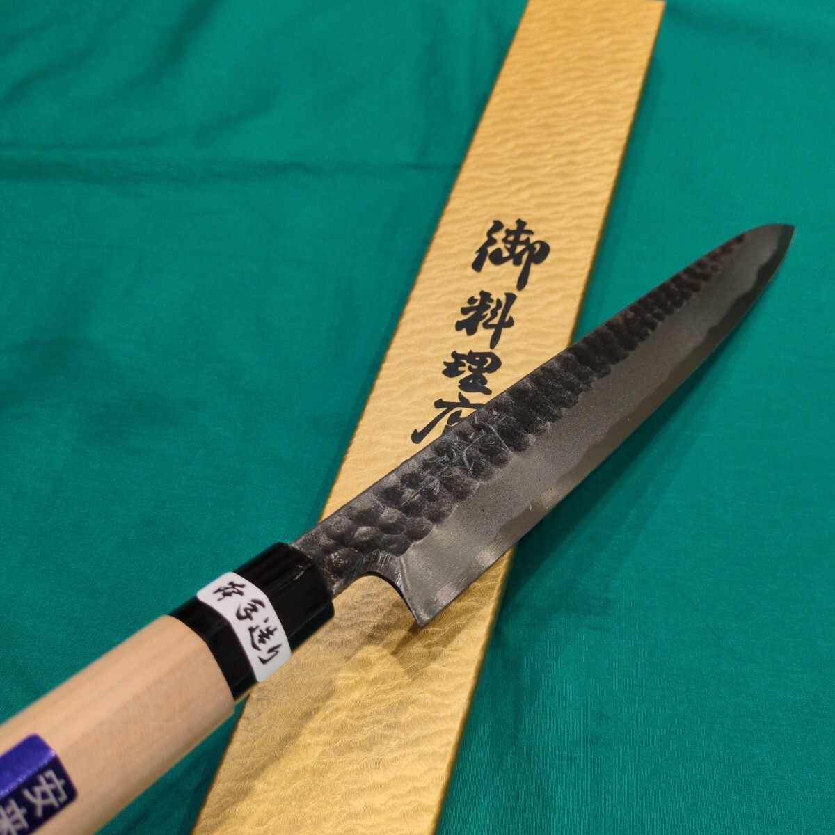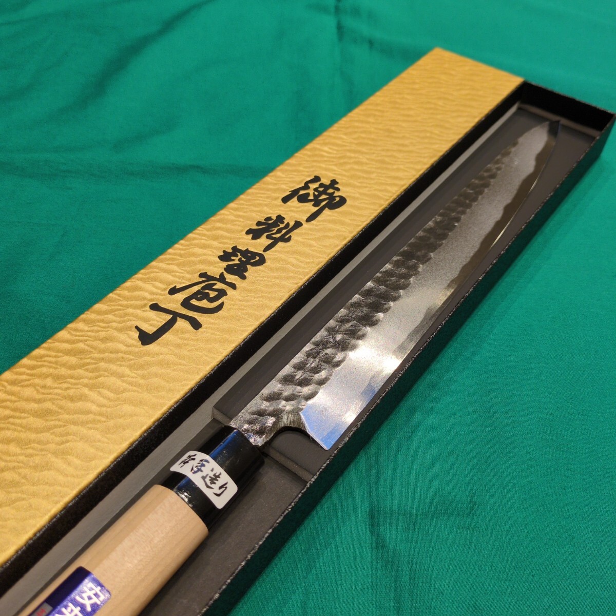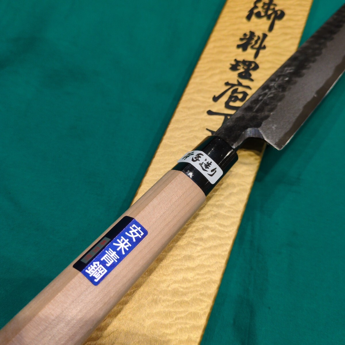 鋼材には安来鋼青鋼を使用し、切れ味抜群で、黒打鎚目仕上げが特徴です。