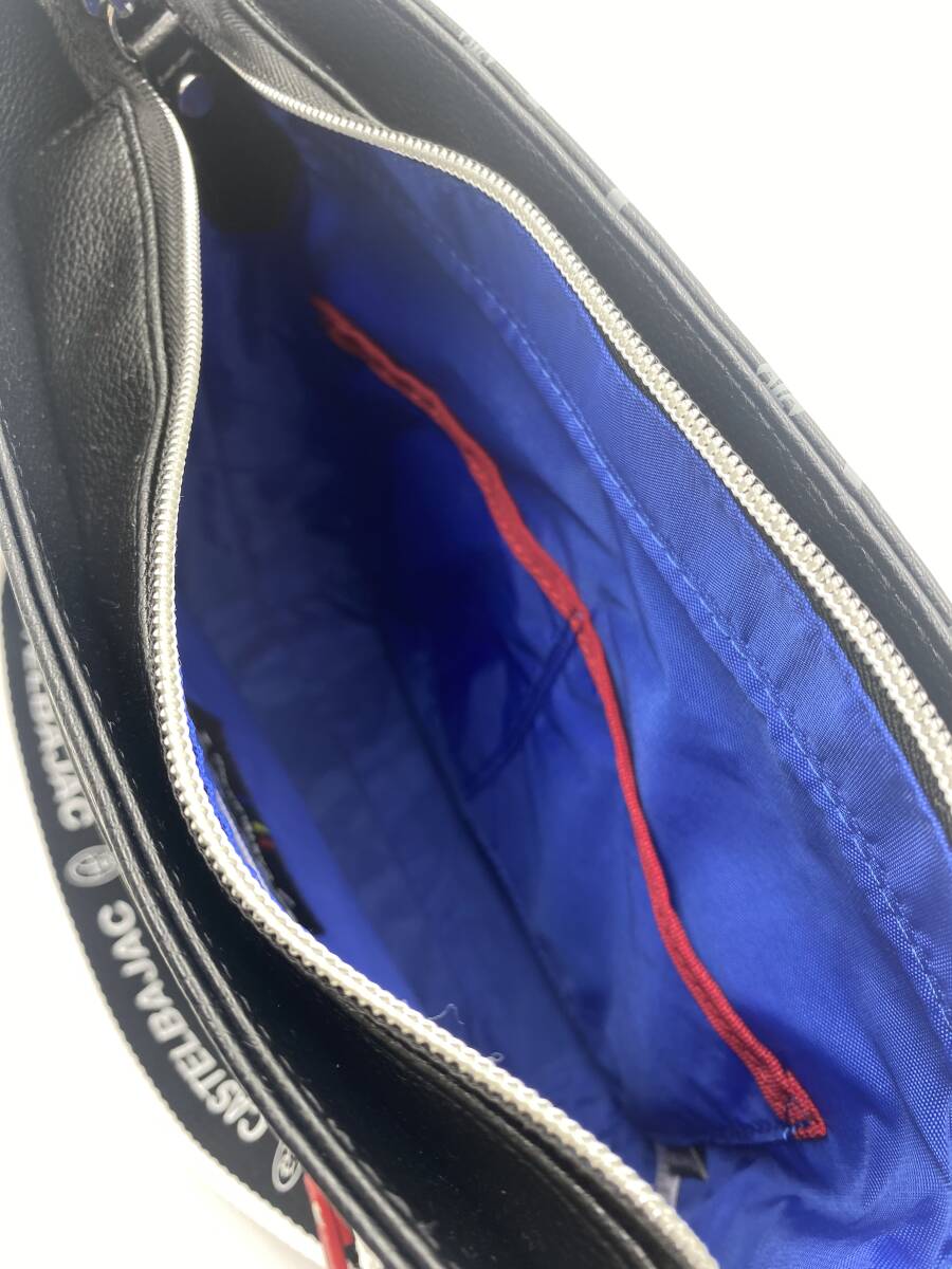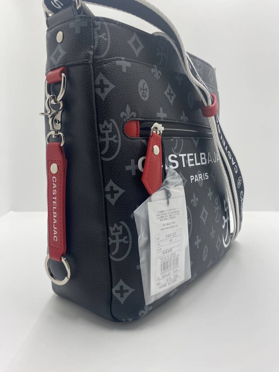■CASTELBAJAC (カステルバジャック) SACHA(サシャ) ショルダーバッグ 048123 ■シボ感ある合成皮革にCASTELBAJACオリジナルのモノグラムをプリント。全面にモノグラム柄をプリントするのではなく、部分的に無地の部分を作る事でメリハリの効いたデザインに。付属合皮とのカラーコンビネーションで遊び心をプラスし明るく軽快なイメージ。内装はフランスを意識したトリコロールカラー。ロゴと家紋、ショルダーテープでもブランドを表現。多目的に使えるキーホルダー付属。フランス国旗色のピスネームを採用。B5対応で普段使いはもちろんビジネスや旅行先のサブバッグ、ゴルフなどにも活躍。仕分けも確り行える作りになっています。贈り物にもお薦めです。 【収納】【外側】ファスナーポケット×1、マグネットホック式ポケット×1、スナップボタン式ポケット×1 【内側】ファスナーポケット×1、オープンポケット×2 ■サイズ:約W24×H26×D9cm ■重量:約500g ■素材:合成皮革 ■カラー:クロ ■生産国:中国 ■状態 新品 写真にてご確認下さい |