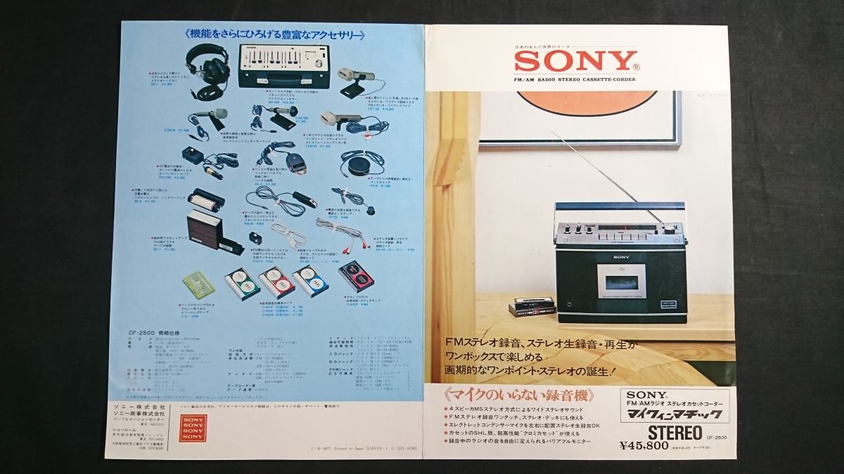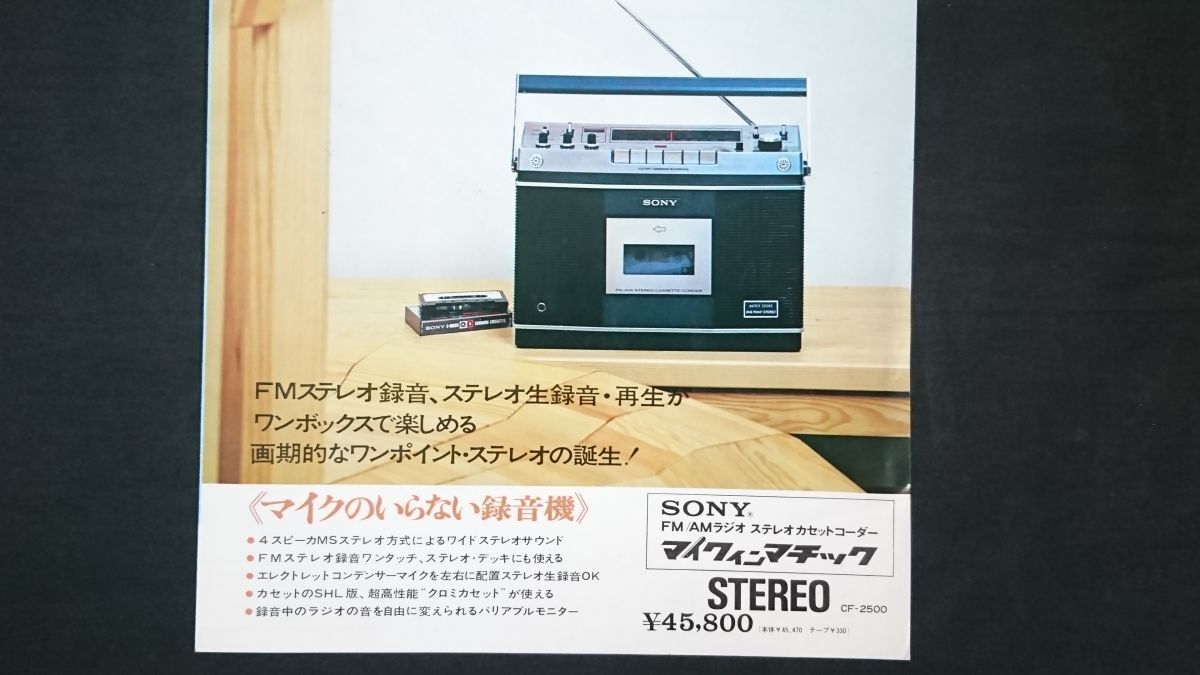 【昭和レトロ】『SONY(ソニー)FM/AM RADIO STEREO CASSETTE CORDER(ラジオ ステレオ カセット コーダー)マイクイン マチック STEREO CF-2500 カタログ 1971年』ソニー株式会社 | |
