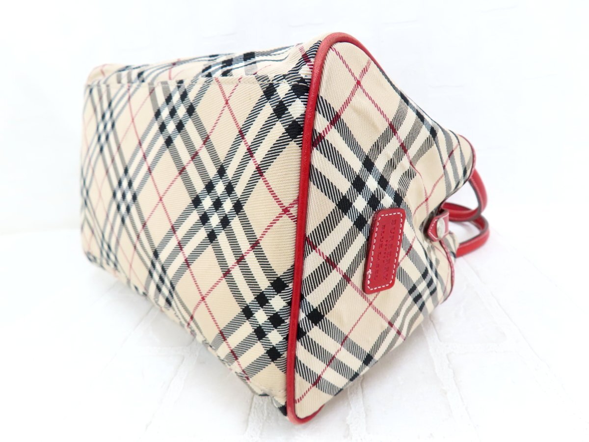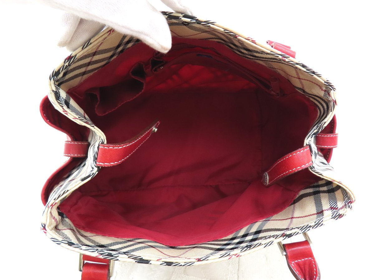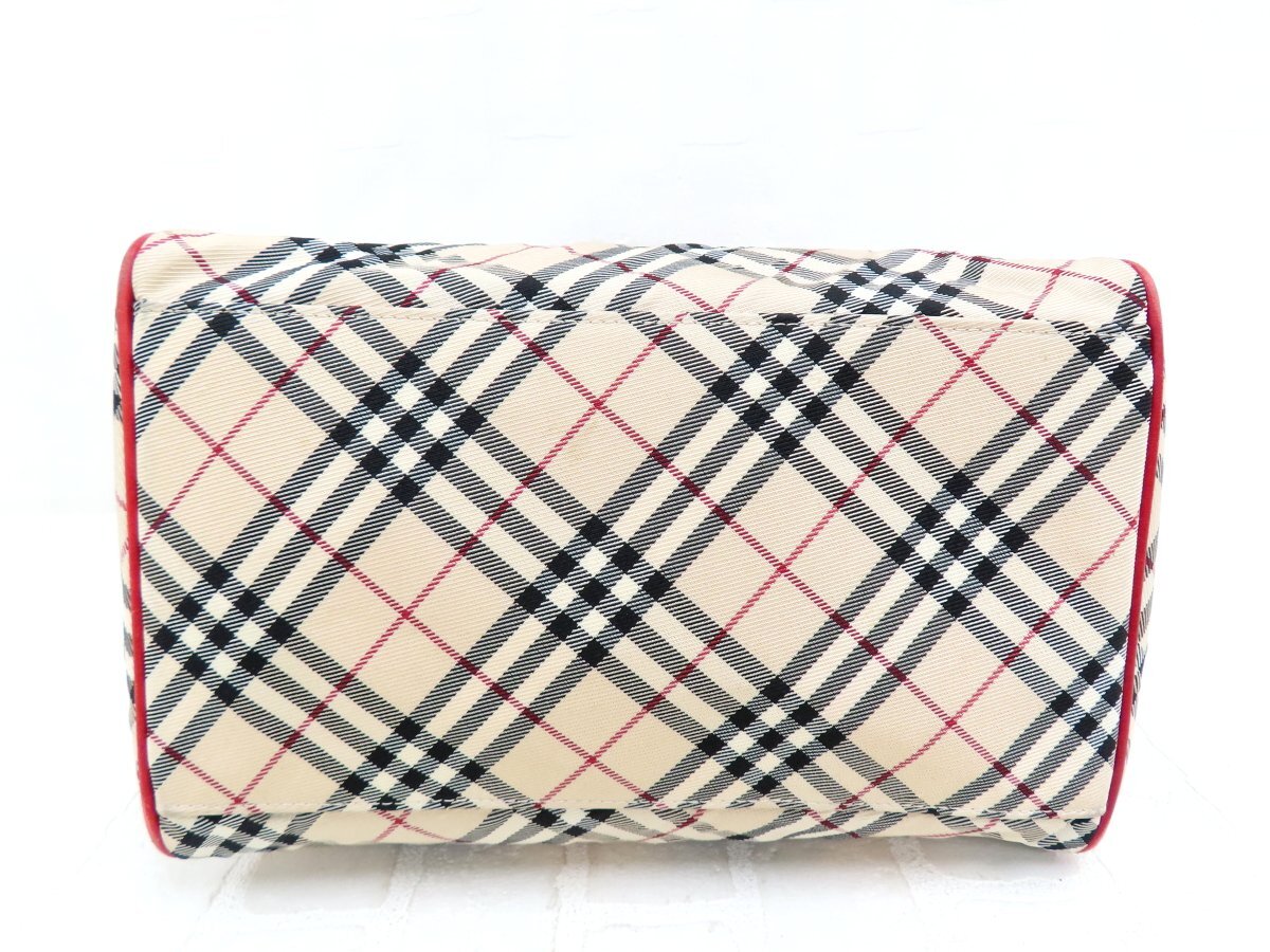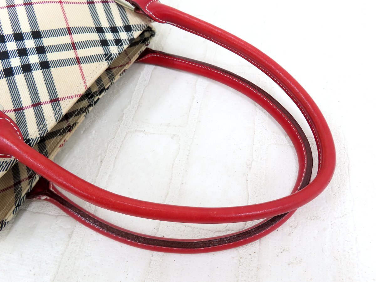 超美品◆BURBERRY バーバリー ブルーレーベル◆ノバチェック◆ナイロン カーフ レザー 本革◆トート バッグ◆ベージュ 赤 SV金具◆A13597