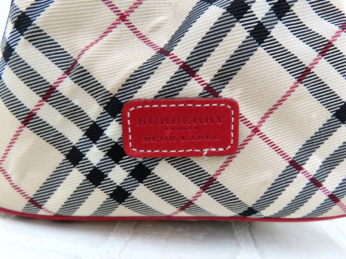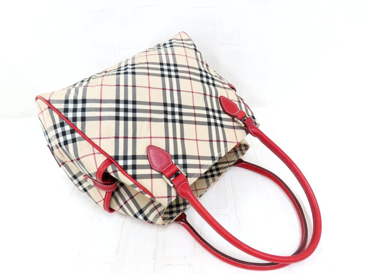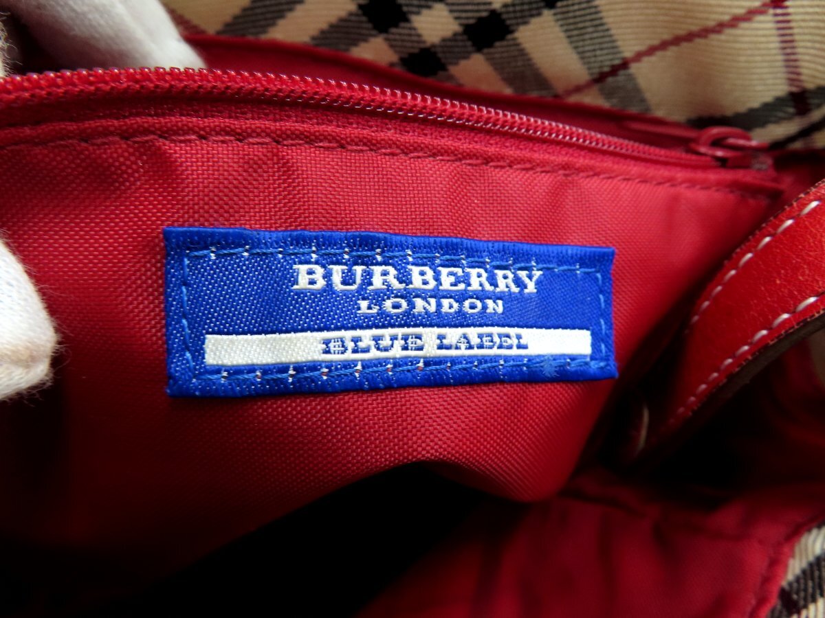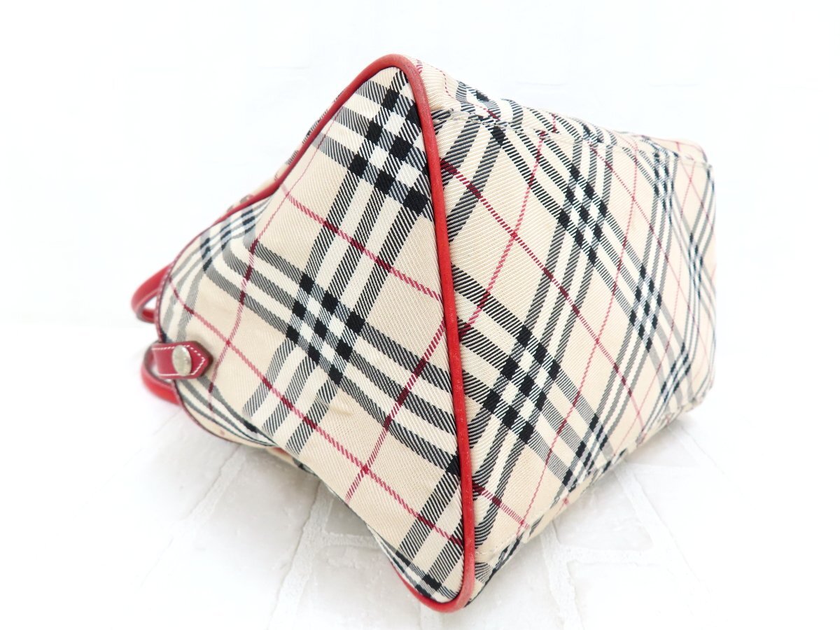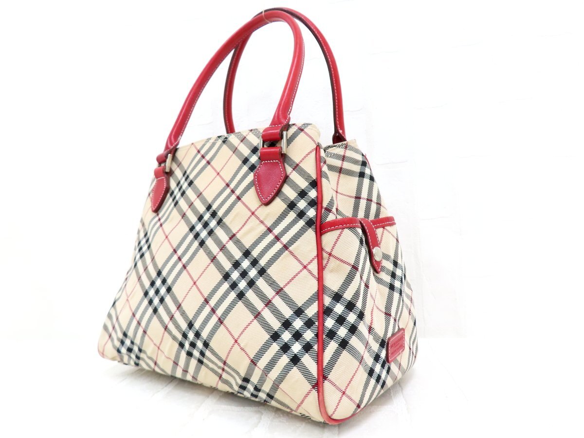 超美品◆BURBERRY バーバリー ブルーレーベル◆ノバチェック◆ナイロン カーフ レザー 本革◆トート バッグ◆ベージュ 赤 SV金具◆A13597