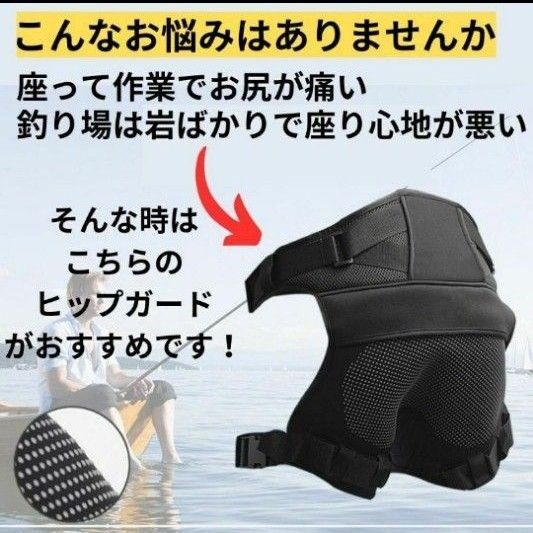 ヒップガード 釣り 暑さ対策 ヒッププロテクター ヒップサポーター スノボー スキー 登山 尻パッド 汚れ防止 滑り止め 防寒対策 黒 未使用