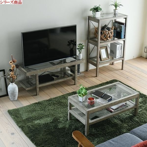 優しい色調で味わい深い古木風シートと美しい強化ガラスを組み合わせたデザインが、 お部屋全体にすっきりとした印象を与えるテレビ台。 圧迫感のないシンプルなデザインは、お気に入りの小物や観葉植物、ドライフラワーなどを一層際立たせてくれます。 40インチのテレビにも対応しており、棚にはレコーダーやDVD、Blu-rayなどのメディア類を収納できます。 |