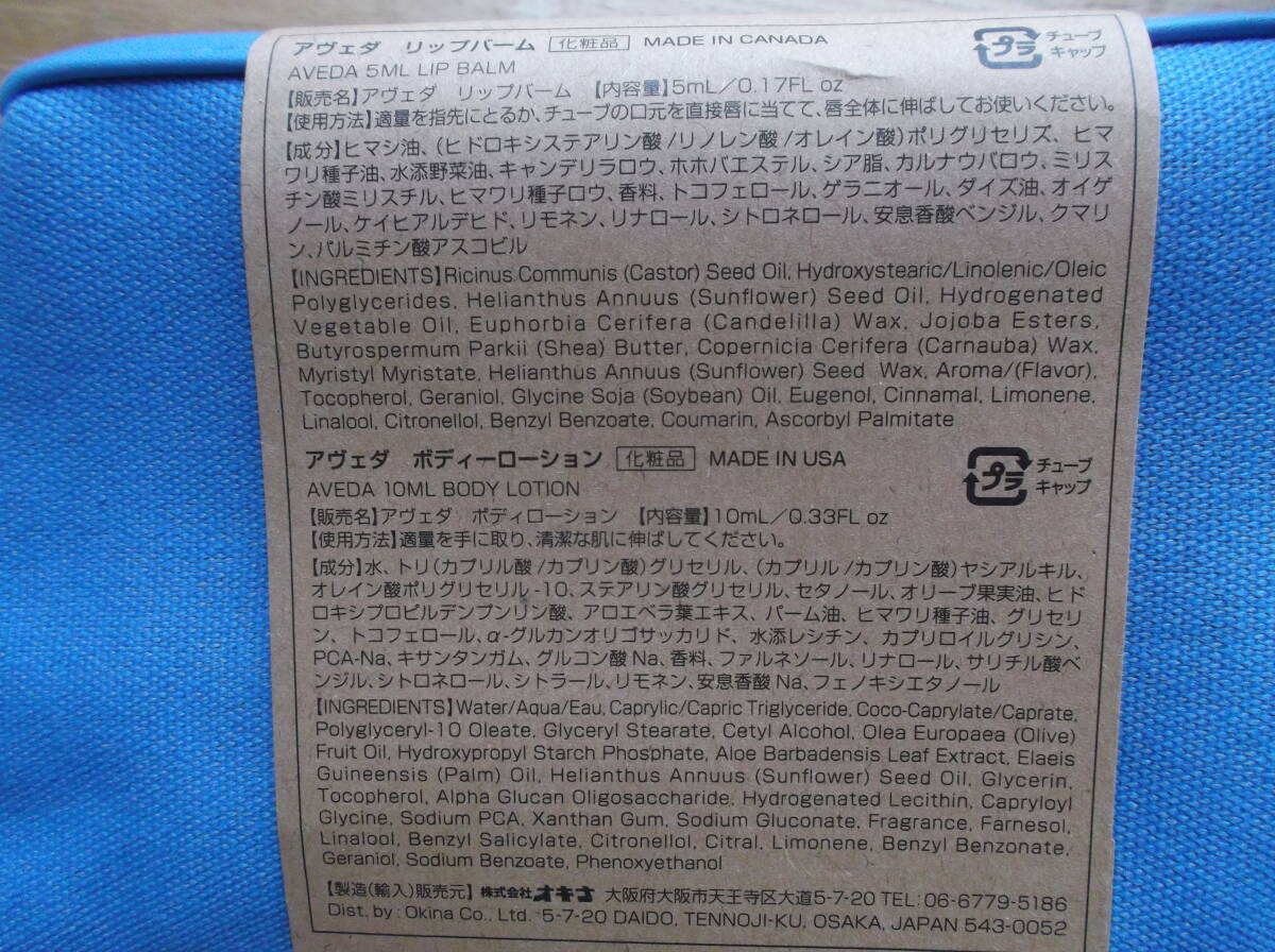 アメニティキットは、AVEDA(アヴェダ)のもので、植物由