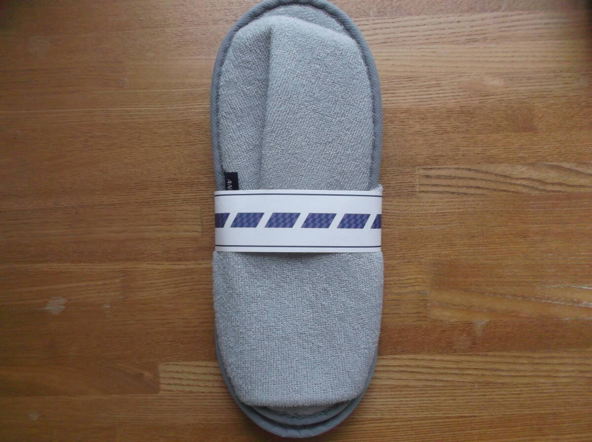 スリッパはグレーのパイル地で、ヨーロッパやアメリカのホテルは
