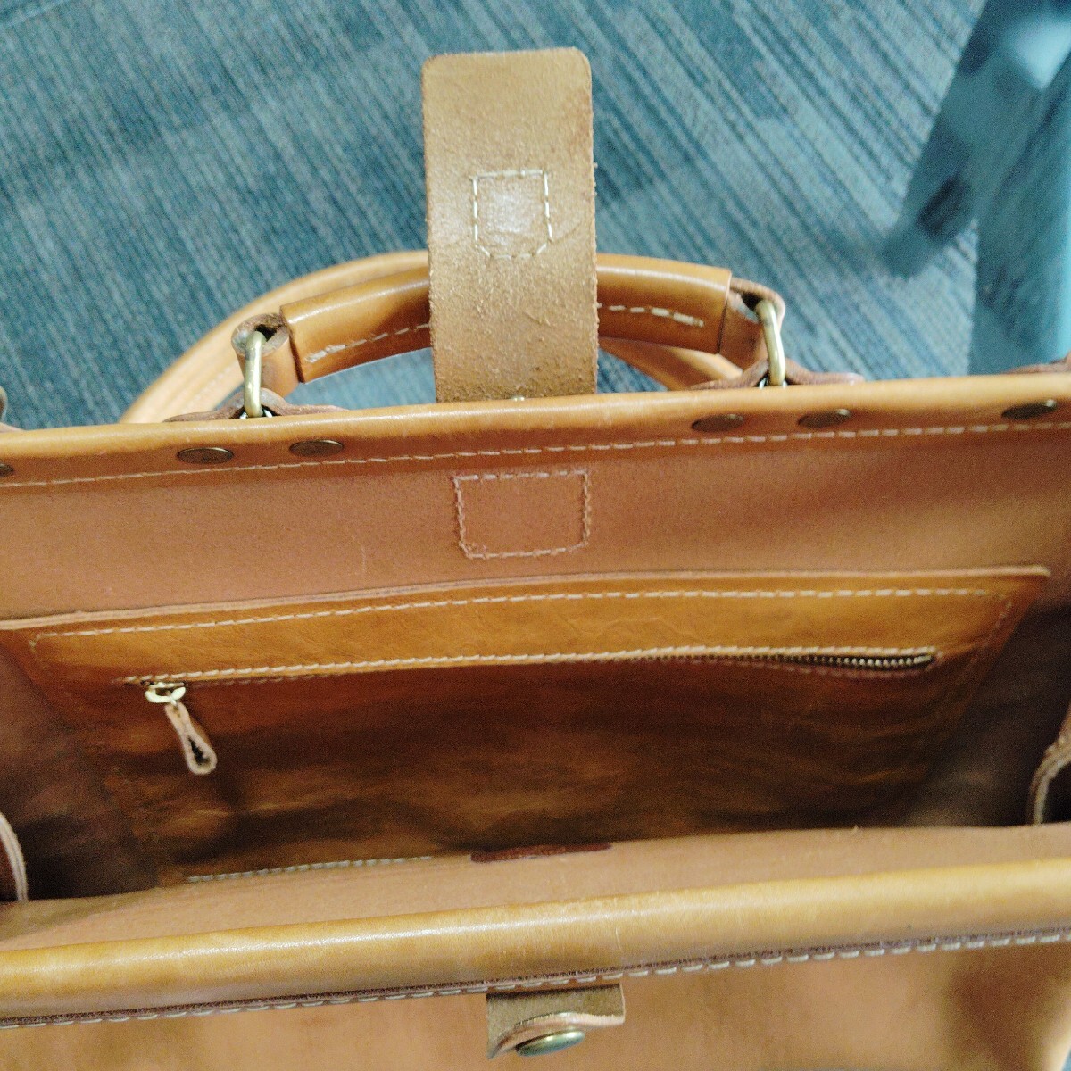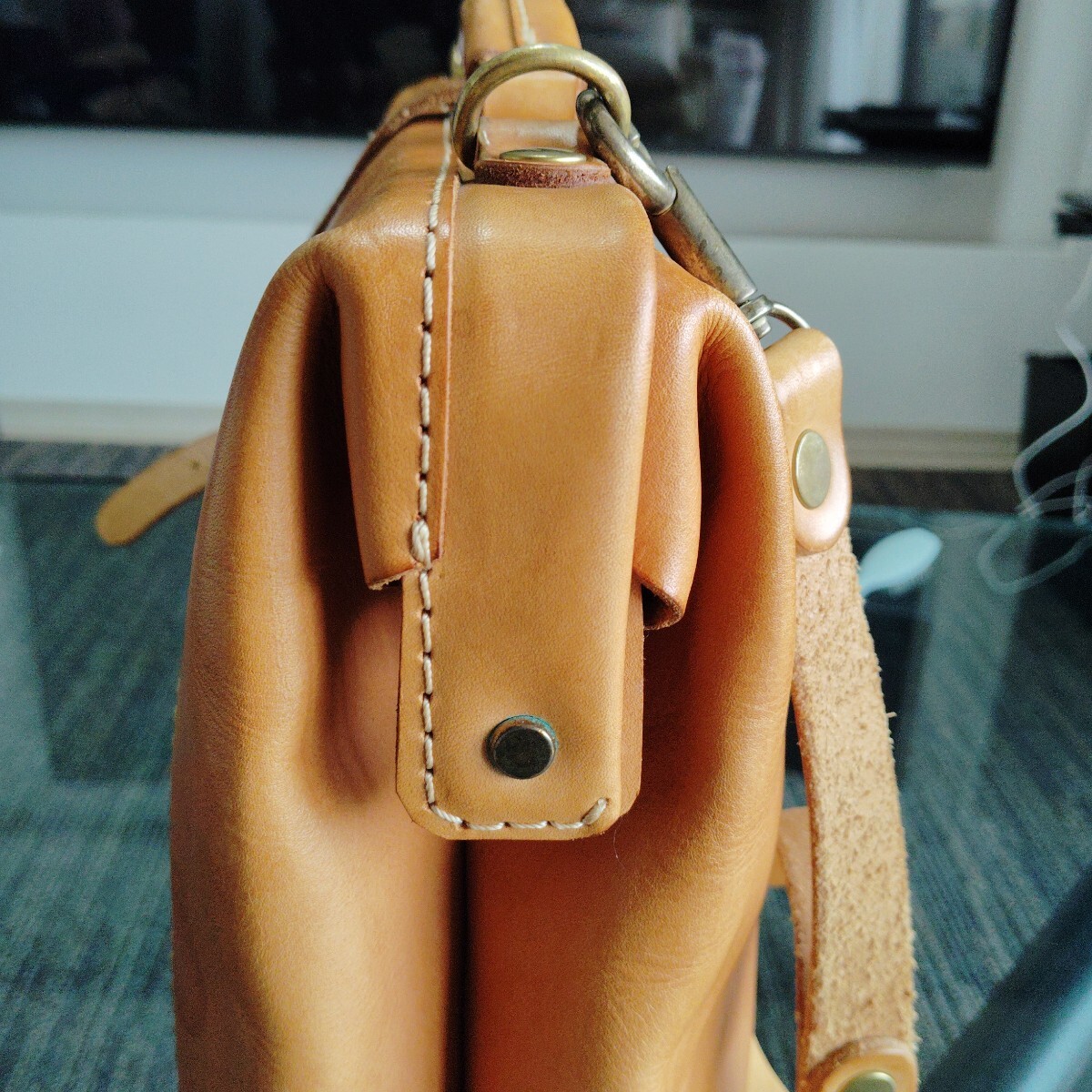 まだまだエイジングが進んでなくレザーバッグの風合いを楽しめると思います。
