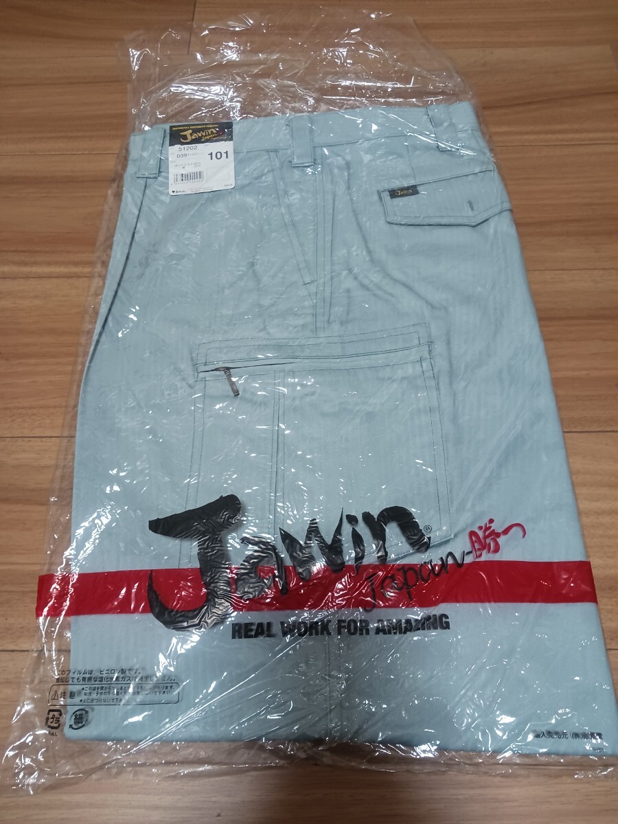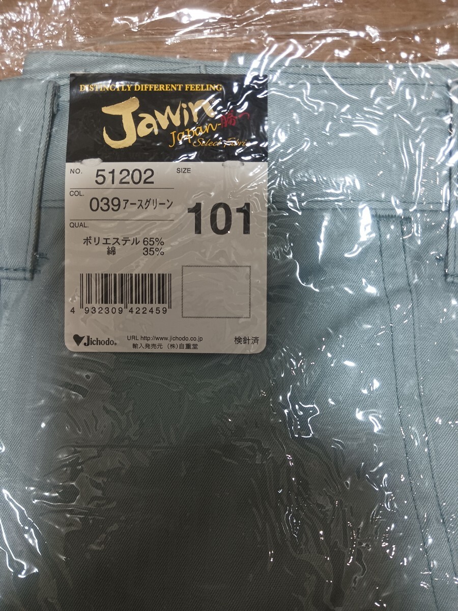 5532 Jawin 51202自重堂|秋冬ワンタックカーゴパンツ|アースグリーン|W101㎝|新品未使用|綿ポリ混紡|帯電防止|作業ズボン|ジャウィン|通年